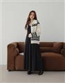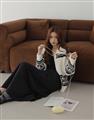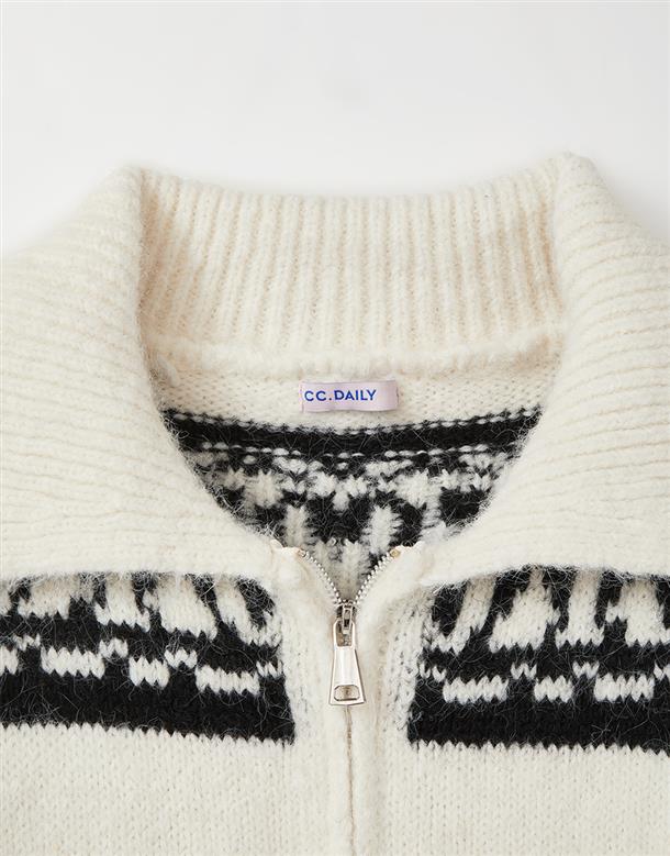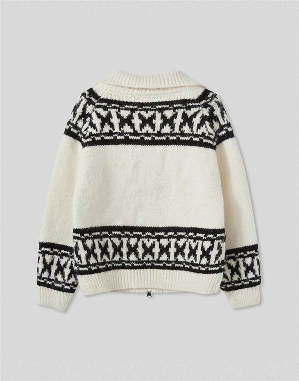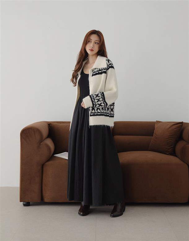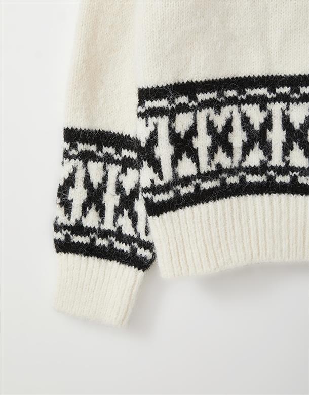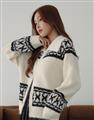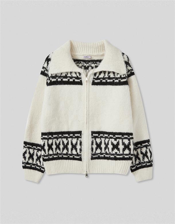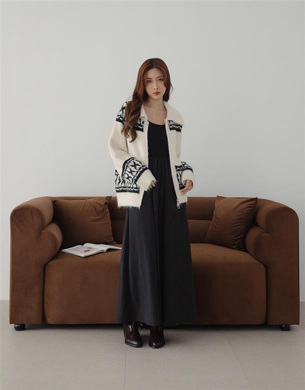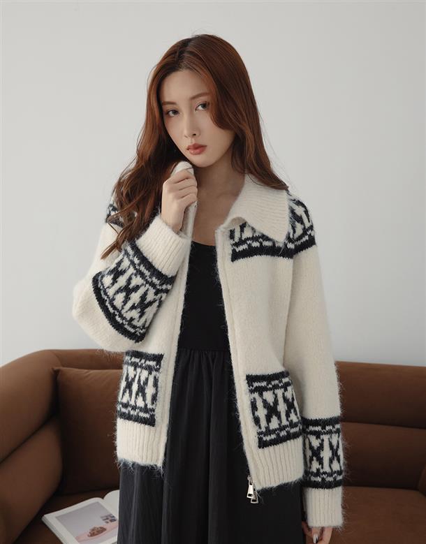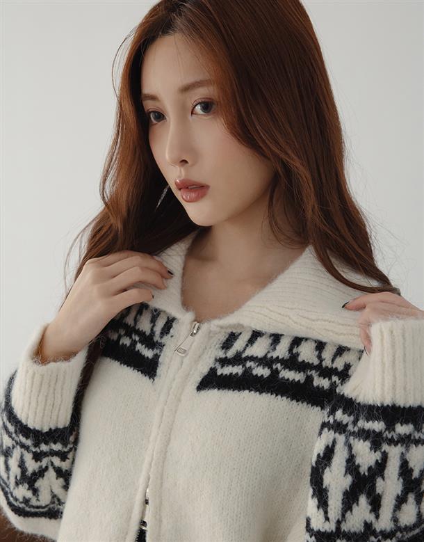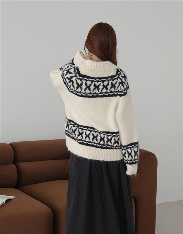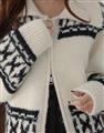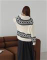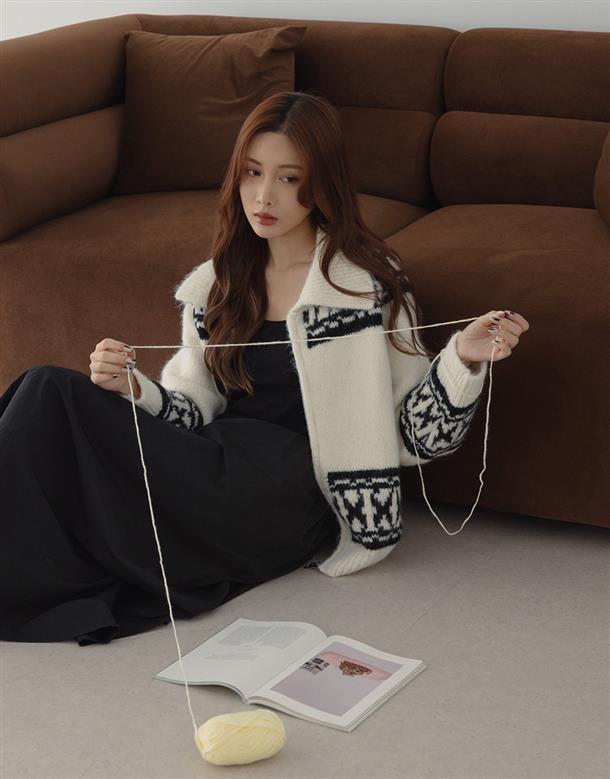 針織毛海毛線面料,大翻領造型,撞色單色民俗圖騰設計,上衣外罩兩穿