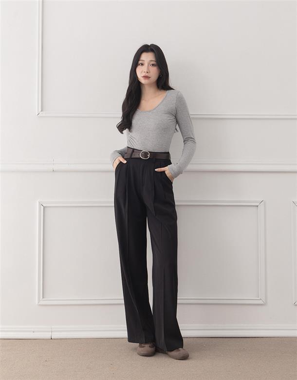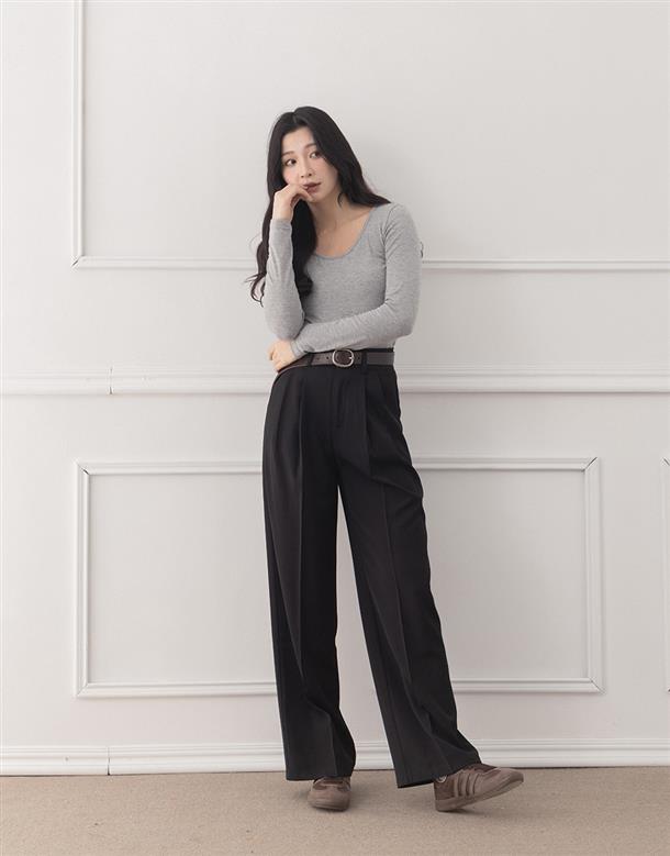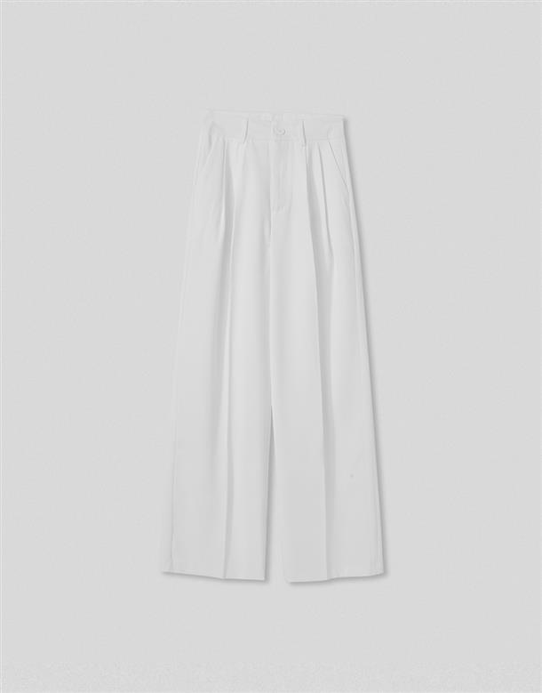 腰打折燙線設計版型更俐落,高腰落地褲型更顯高挑身形,基本百搭兩色可以選擇,米白&黑色