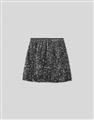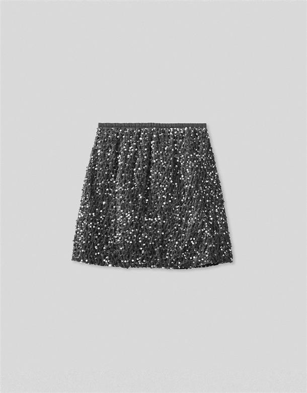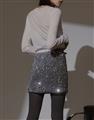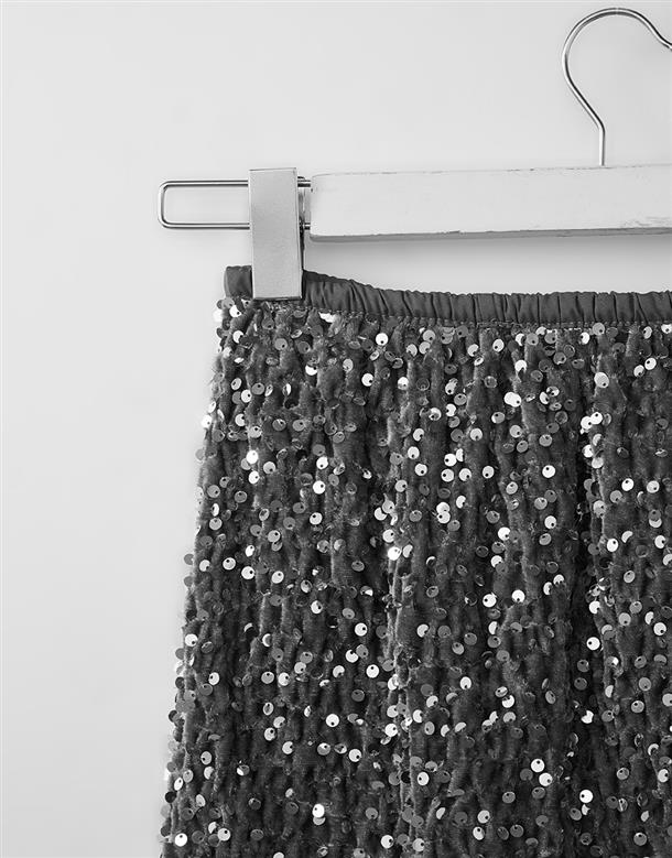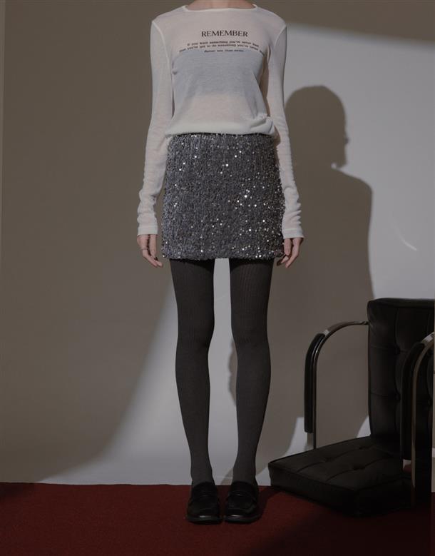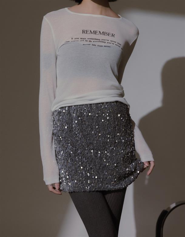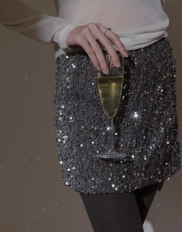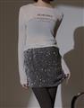 無彈軟料絨面針織布,立體小亮片,腰圍鬆緊帶,內裡安全褲不走光