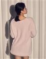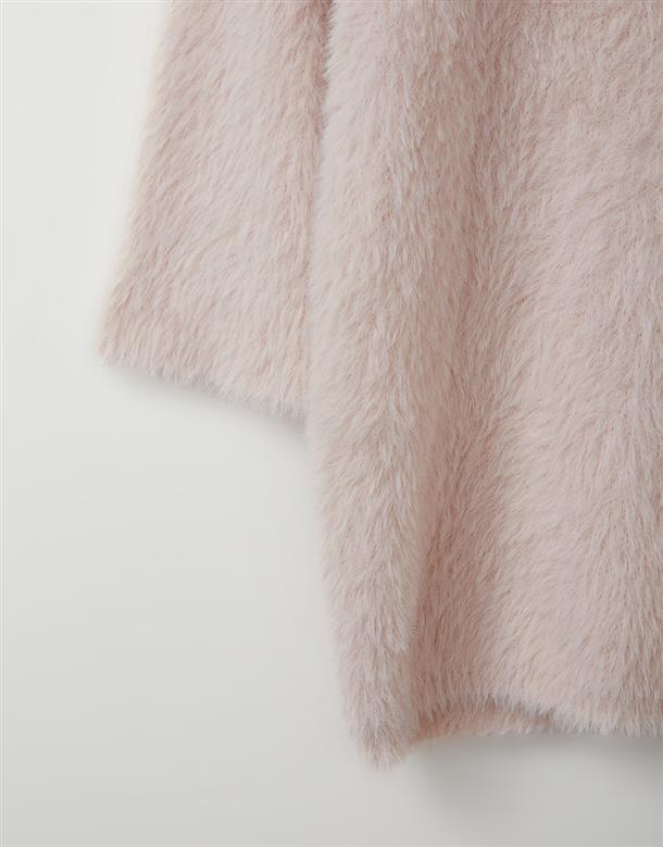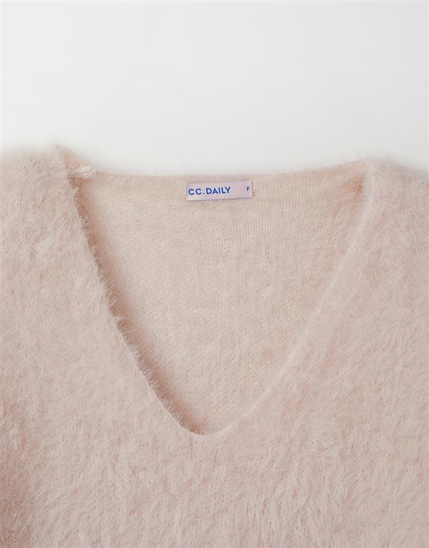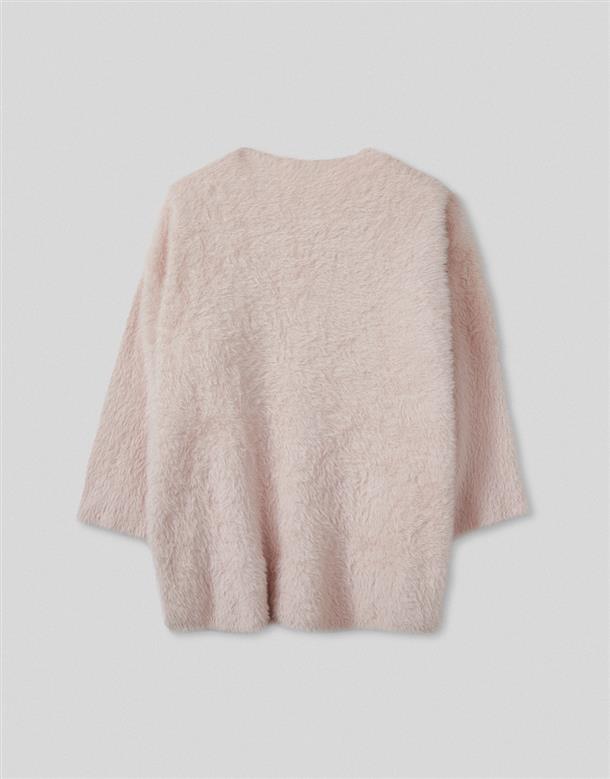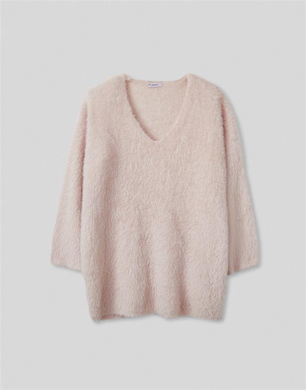 仿貂毛柔軟面料,V領設計修飾臉部線條,寬鬆版型創造慵懶氛圍感