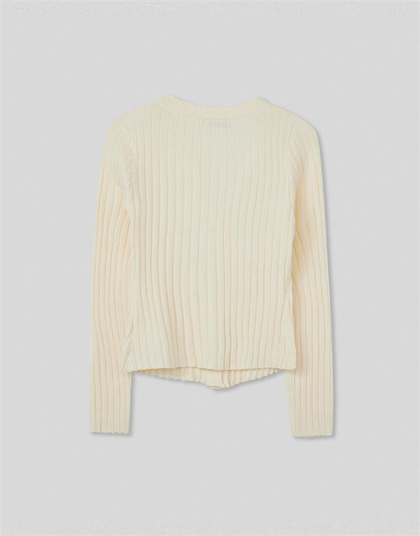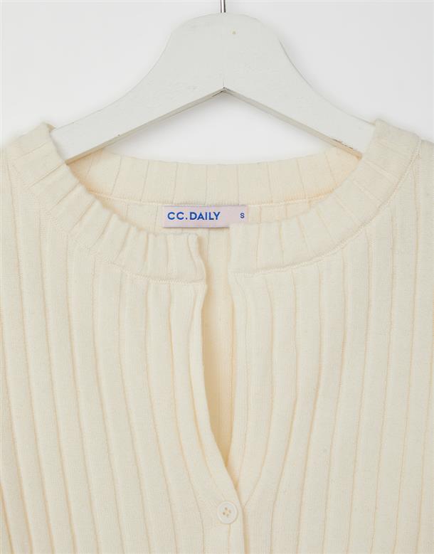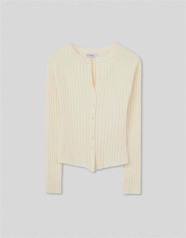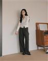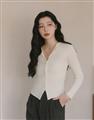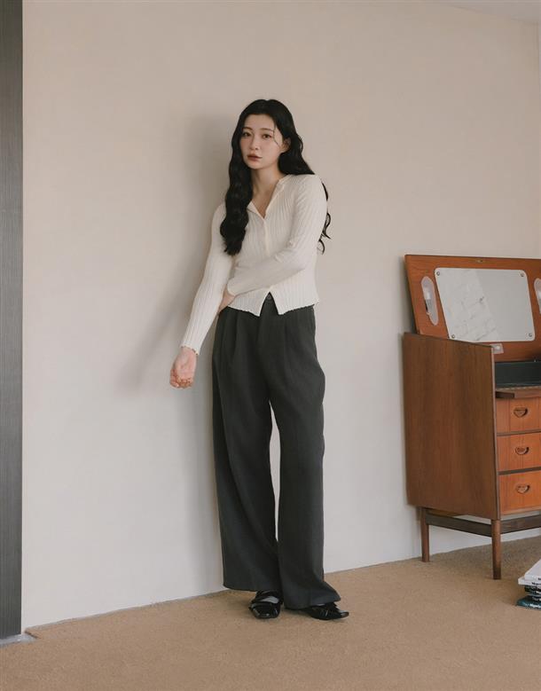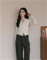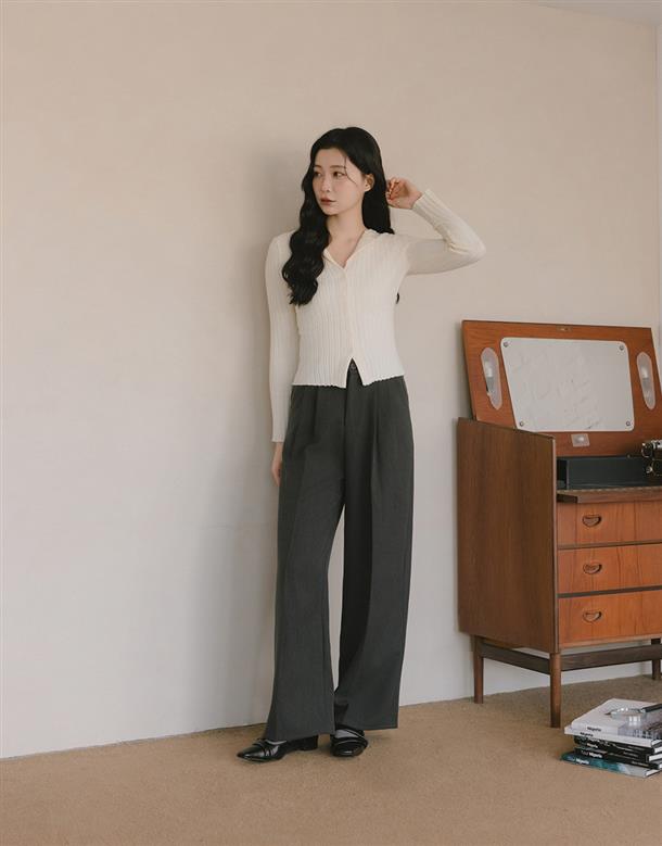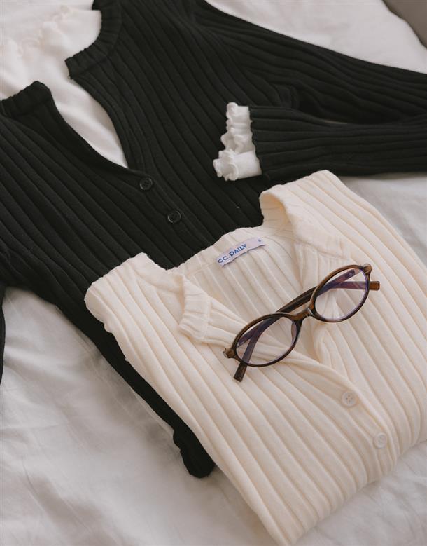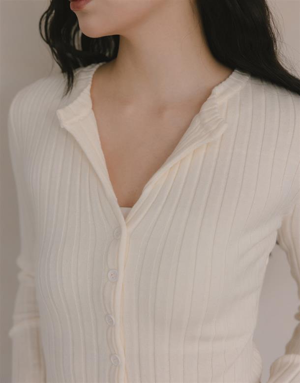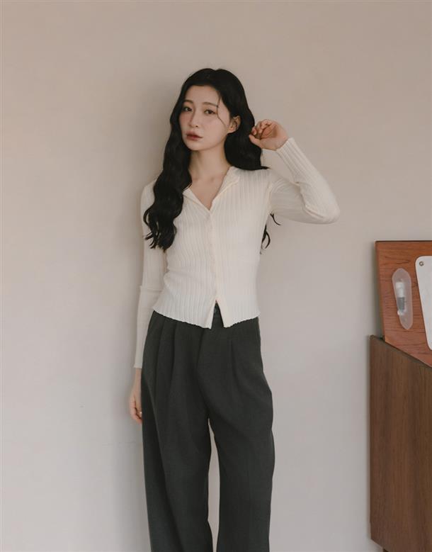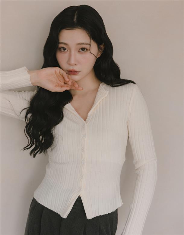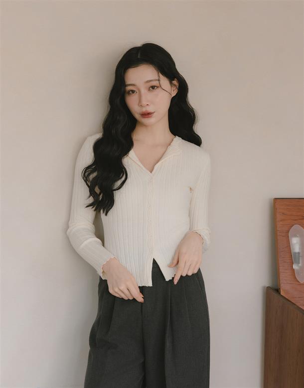 坑條針織面料,舒適手感,V形領形修飾臉部線條,基礎百搭版型可以駕馭各種風格