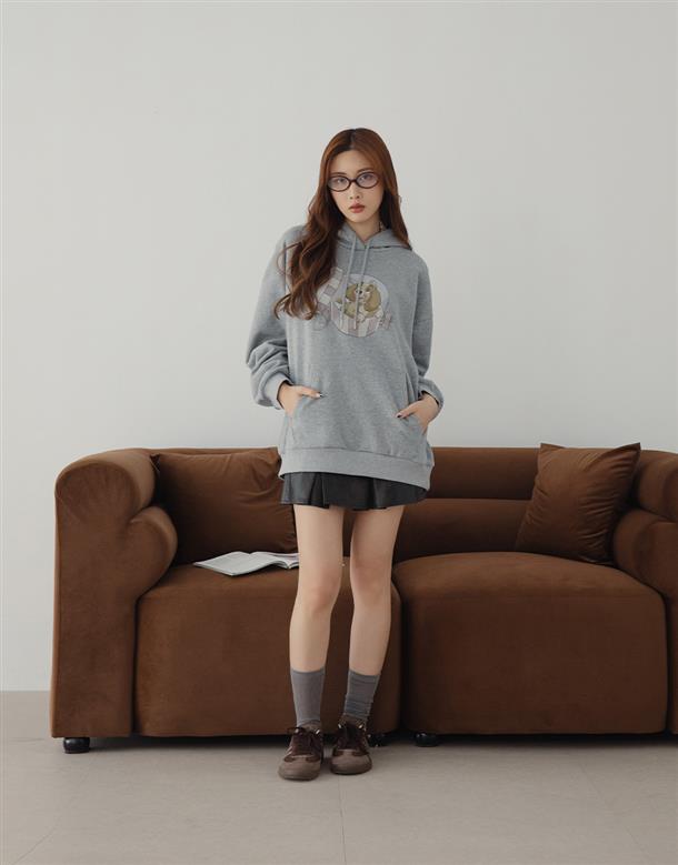 親膚刷毛衛衣面料,版型寬鬆,前後印花設計,手繪線稿風格小姐與流氓印花