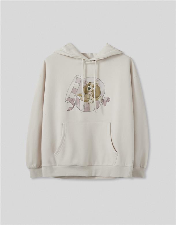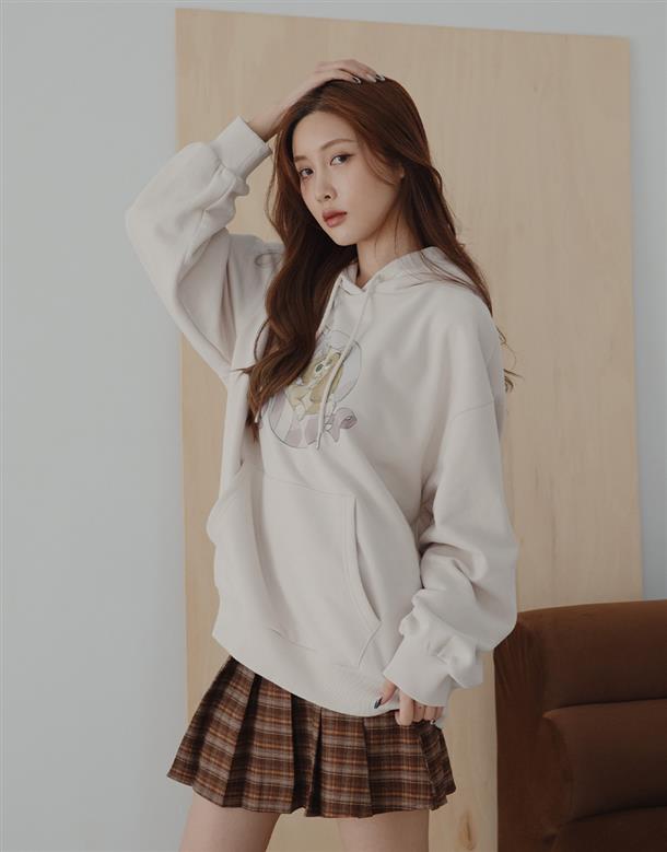 親膚刷毛衛衣面料,版型寬鬆,前後印花設計,手繪線稿風格小姐與流氓印花