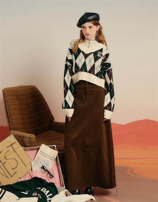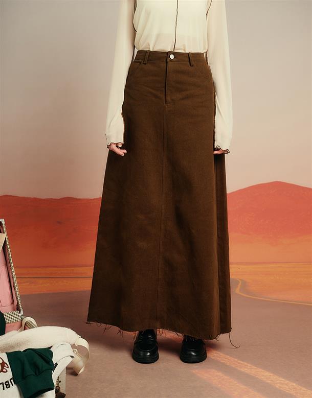 修身長裙,後口袋精緻奇奇蒂蒂布章,棉質斜紋布料