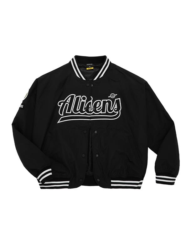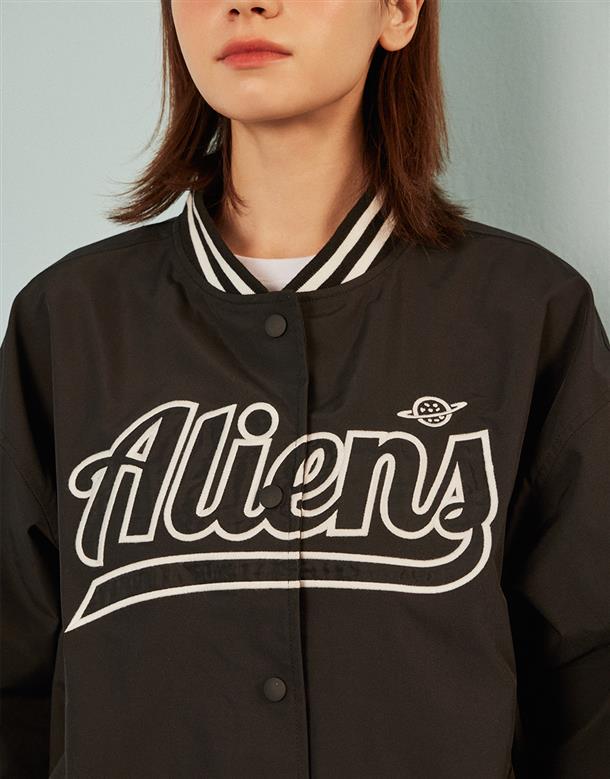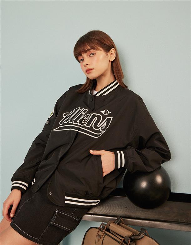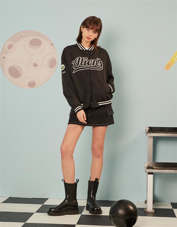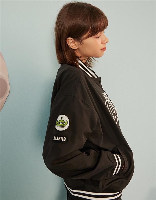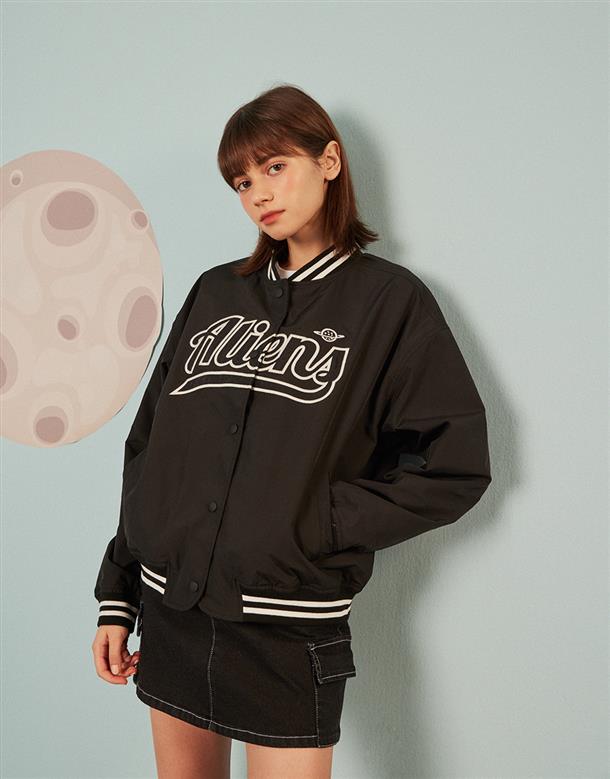 三眼怪貼布繡設計,風衣布材質寬鬆棒球外套