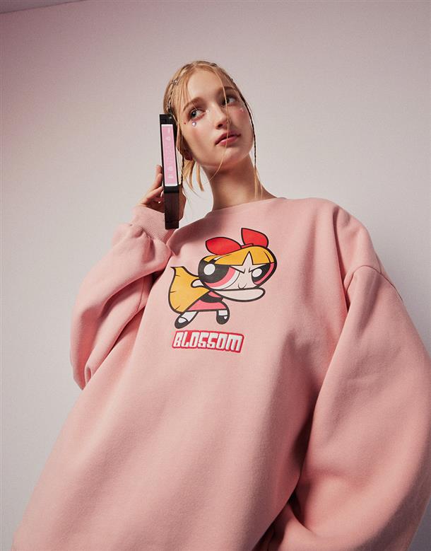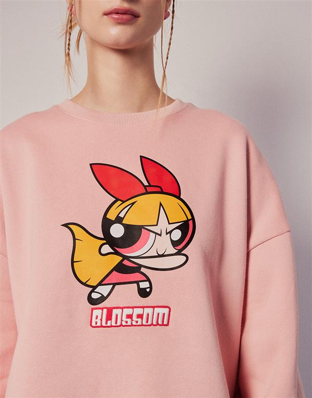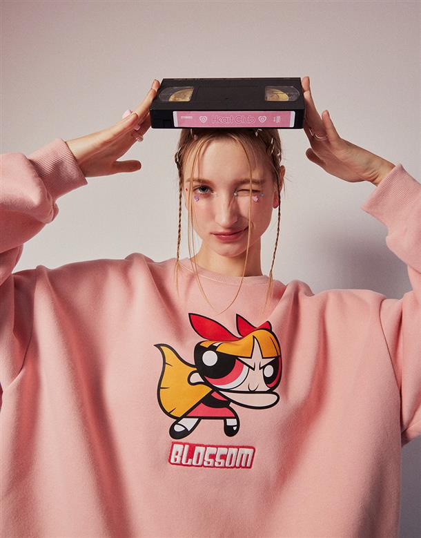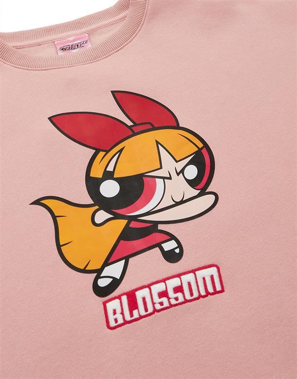 飛天小女警系列,內刷毛舒適保暖,寬鬆蓋臀可當洋裝的版型設計,花花印刷電繡設計