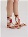 MIT 凱蒂貓格紋設計中長襪,精緻電繡款