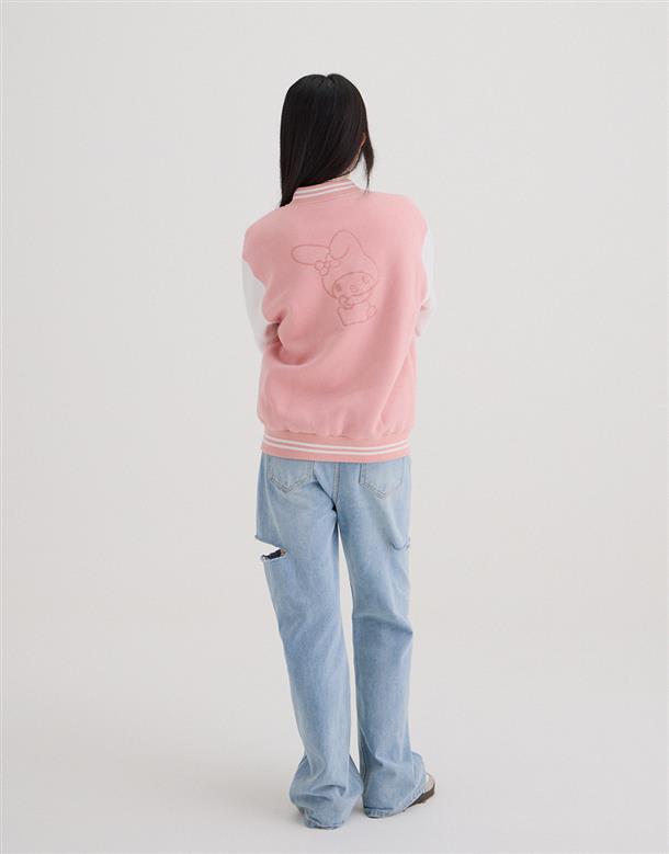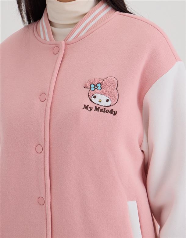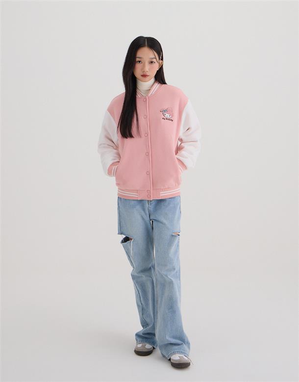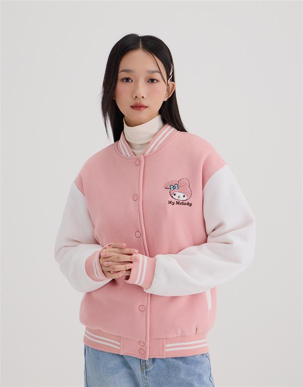 美樂蒂系列,美樂蒂撞色棒球外套,內刷毛保暖款。