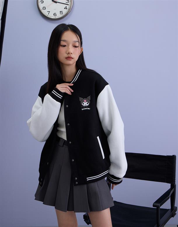 酷洛米系列,酷洛米撞色棒球外套,內刷毛保暖款。