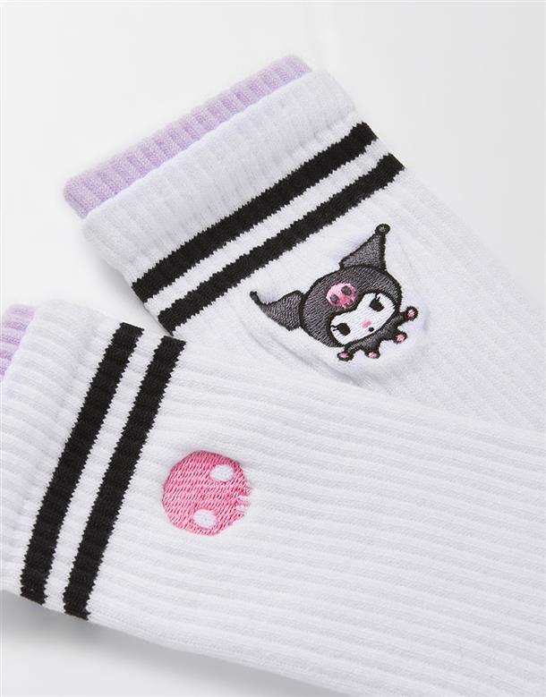 MIT 酷洛米撞色中長襪,精緻電繡款