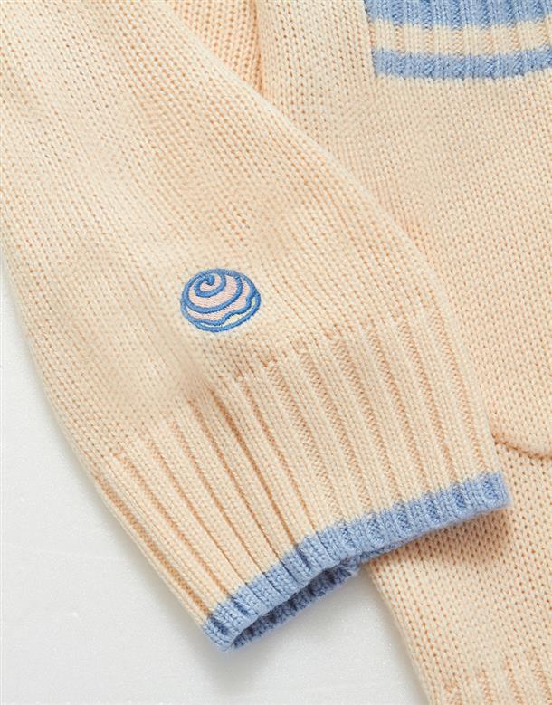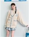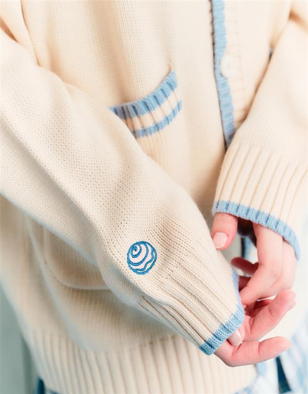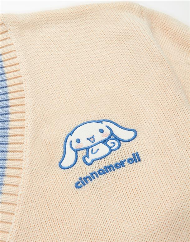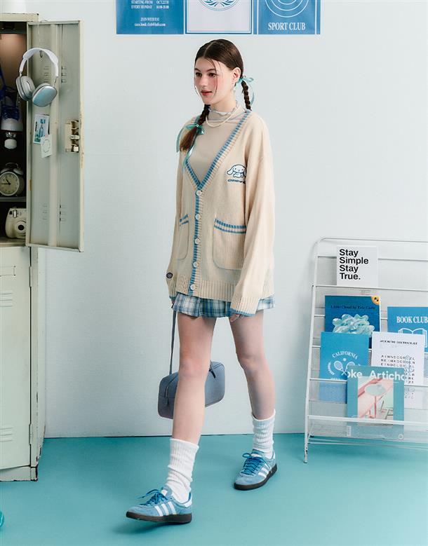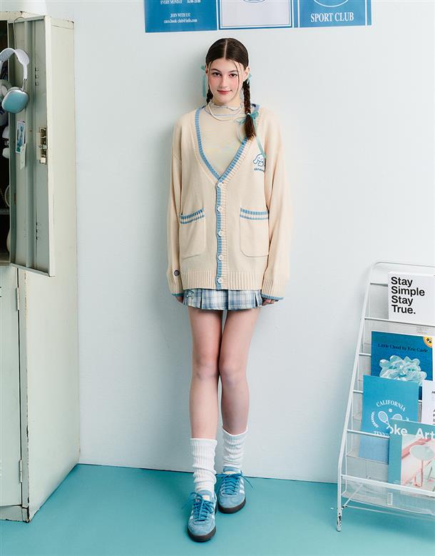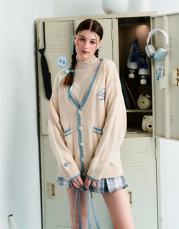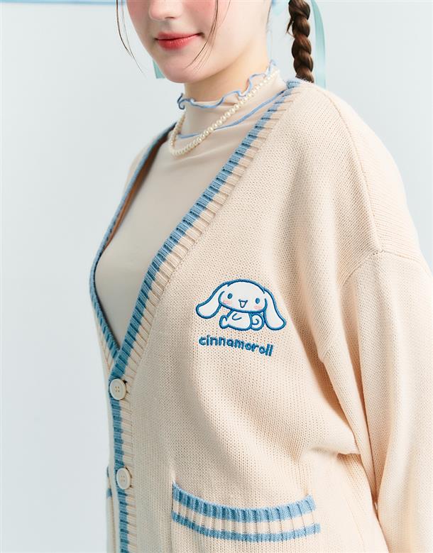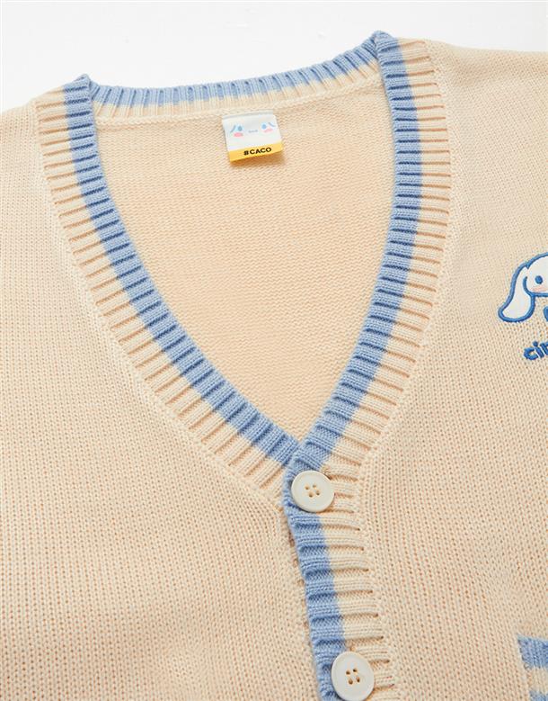 大耳狗V領毛織外套,精緻貼布繡設計,舒適手感好穿搭