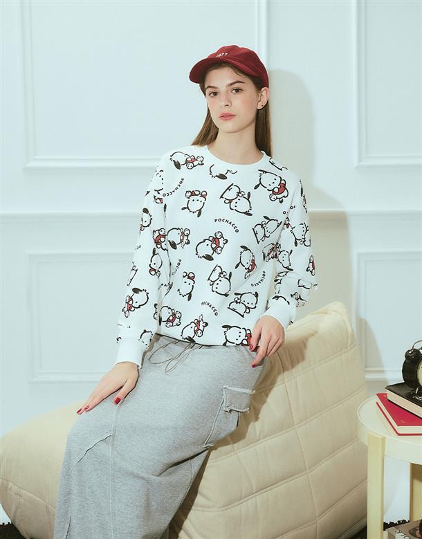帕恰狗滿版印花大學TEE,舒適棉質面料
