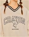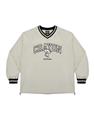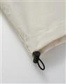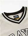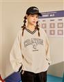 小白羅紋撞色V領寬鬆版上衣,下襬彈性繩縮口調設計,質感貼布繡,輕薄風衣面料,運動率性穿搭款