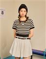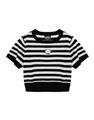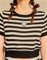 黑白條針織上衣,前胸質感小白圖案電繡,短版合身彈性舒適款