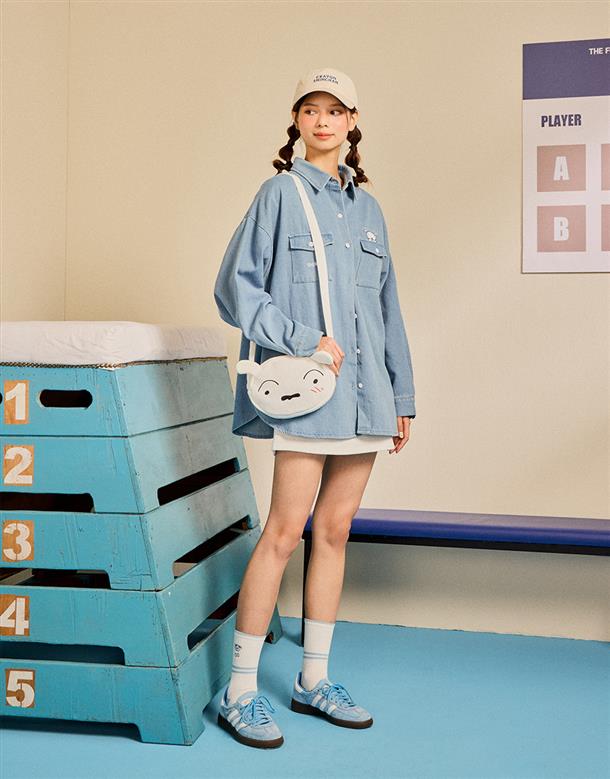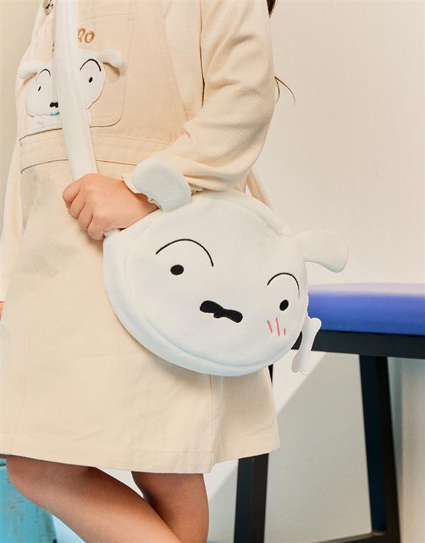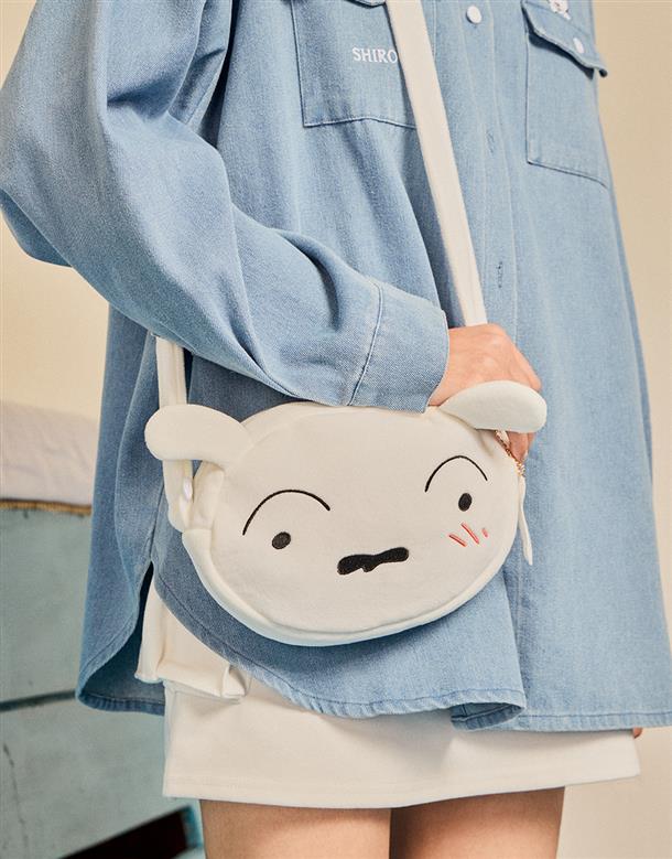 小白大臉造型側背包,立體耳朵設計,精緻電繡,舒適銀狐絨面料