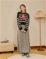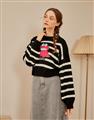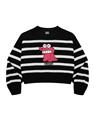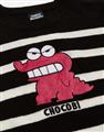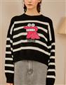 巧克比鱷魚阿山大臉貼布繡,撞色條紋設計,舒適微落肩毛衣