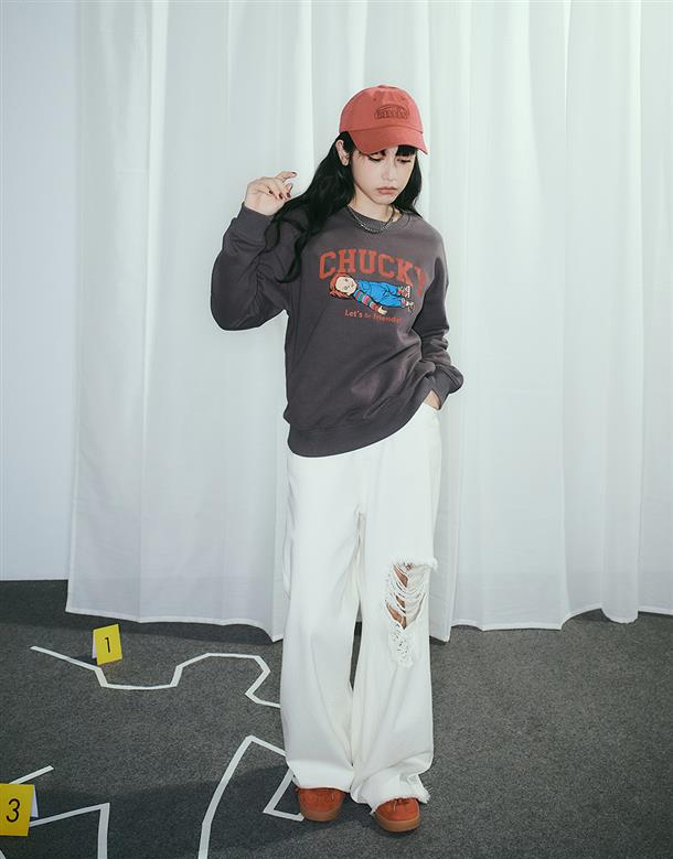 恰吉系列,質感轉印工藝,舒適薄刷毛落肩大學TEE版型