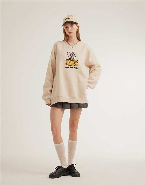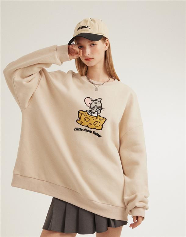 內刷毛舒適保暖,寬鬆蓋臀可當洋裝的版型設計,泰菲細緻貼布繡設計