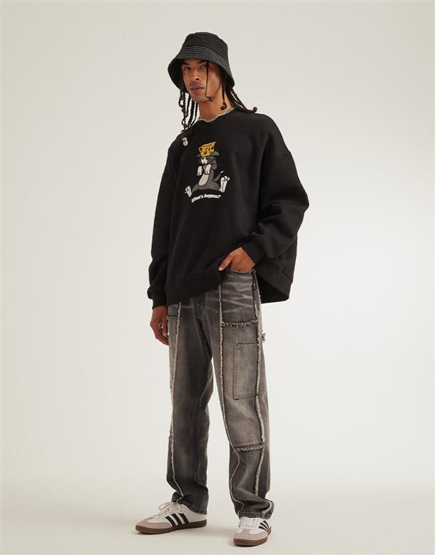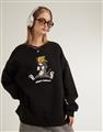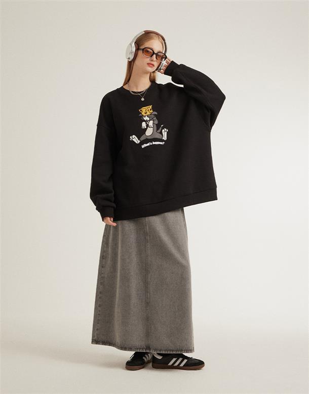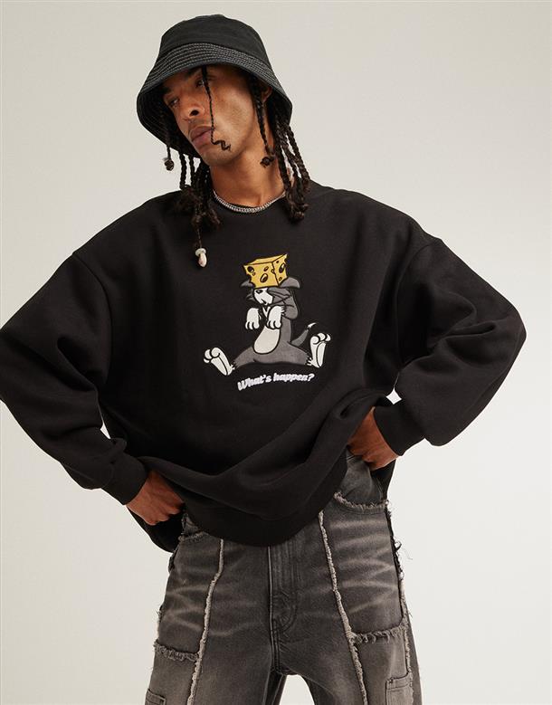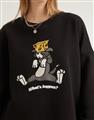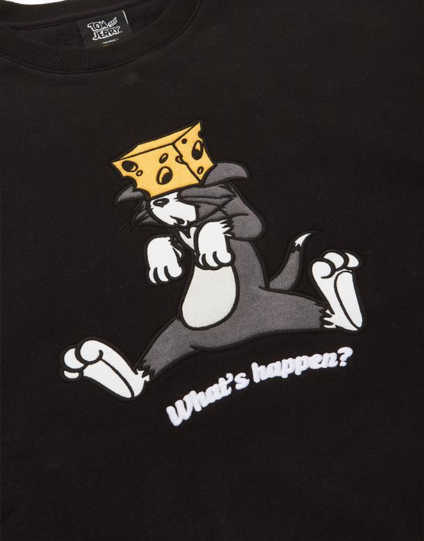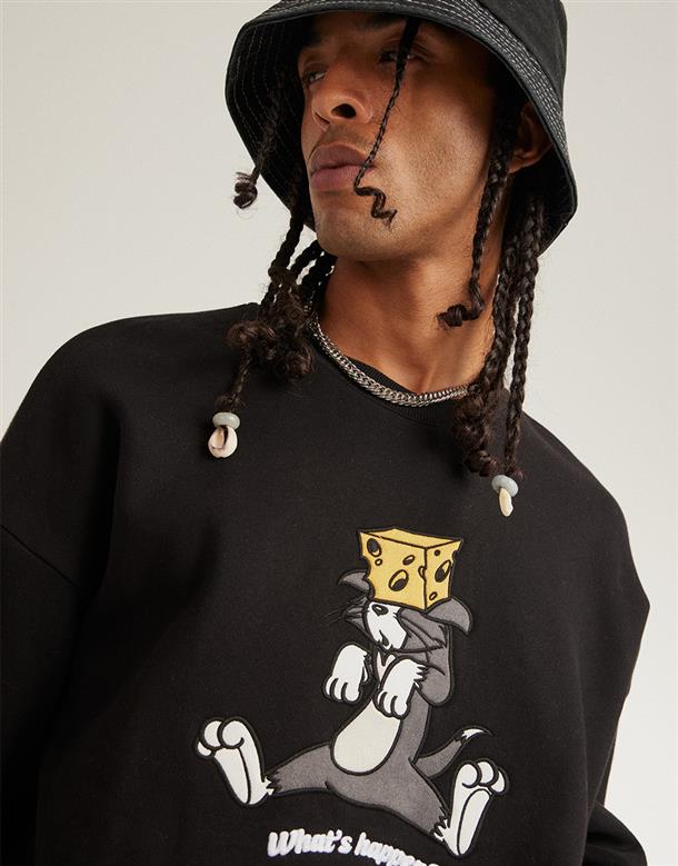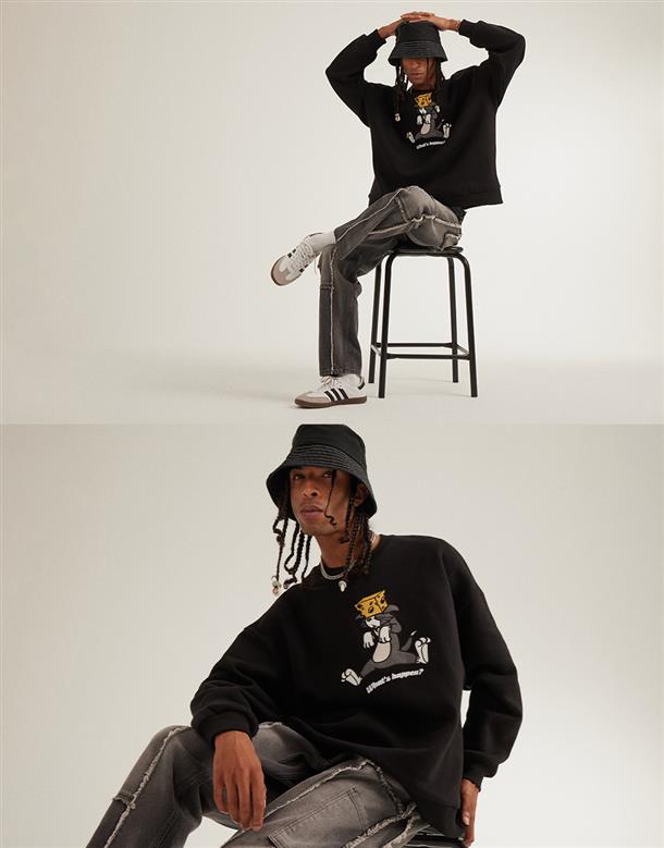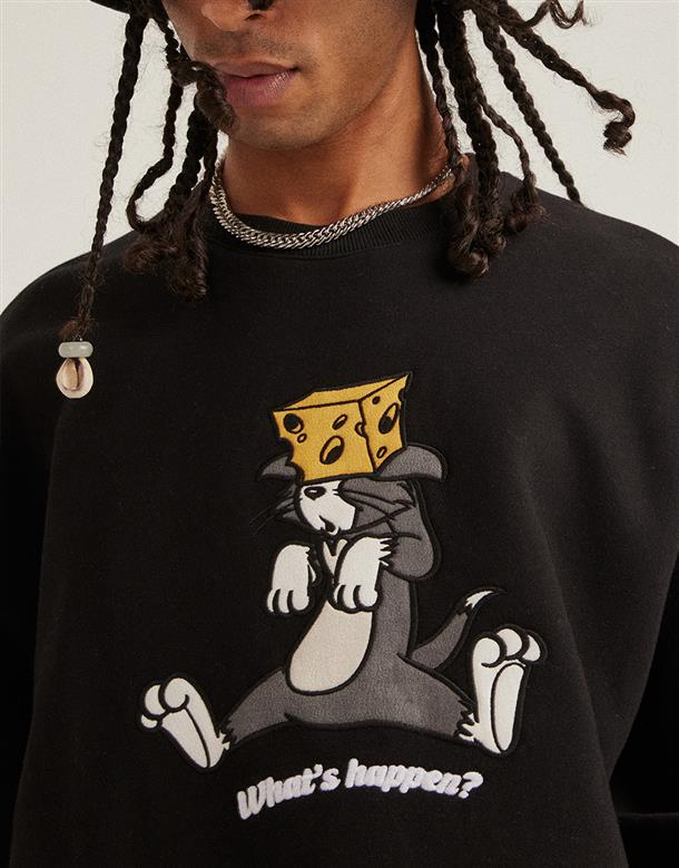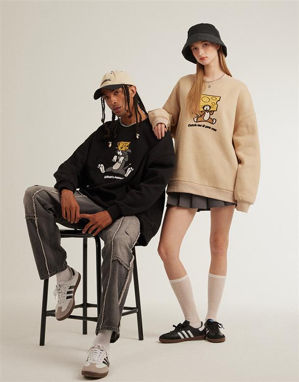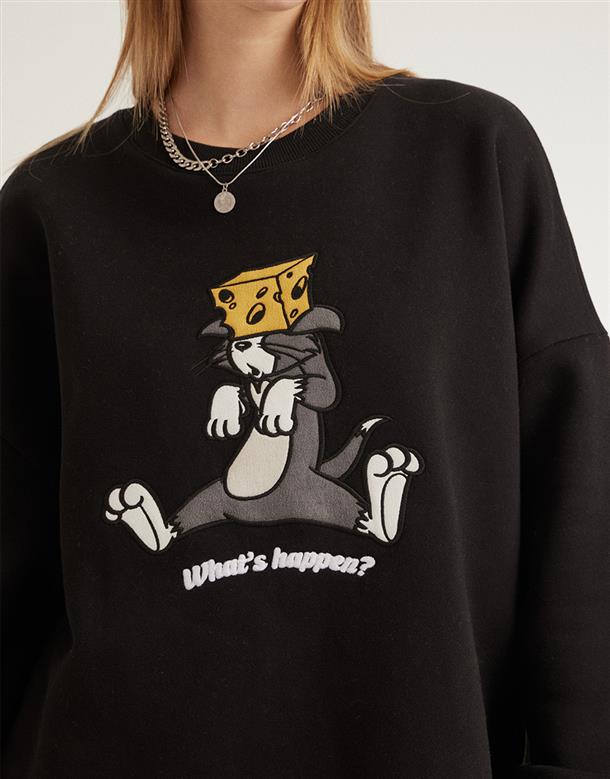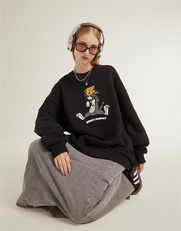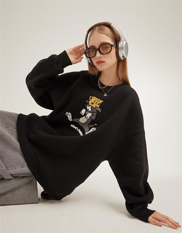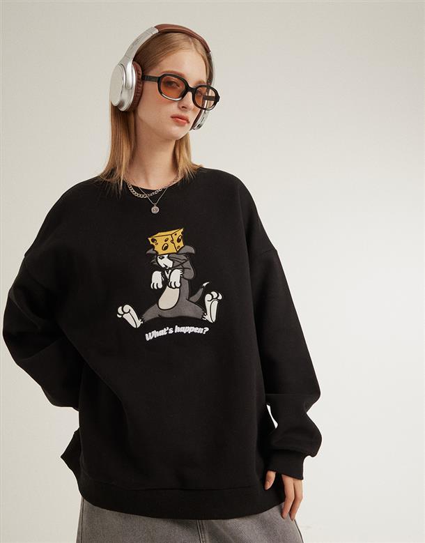 內刷毛舒適保暖,寬鬆蓋臀可當洋裝的版型設計,湯姆貓細緻貼布繡設計
