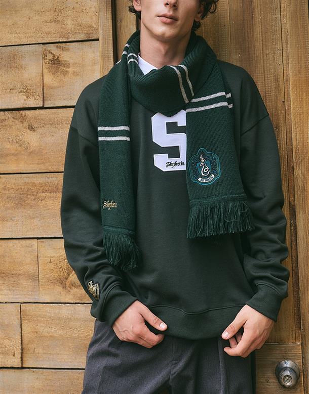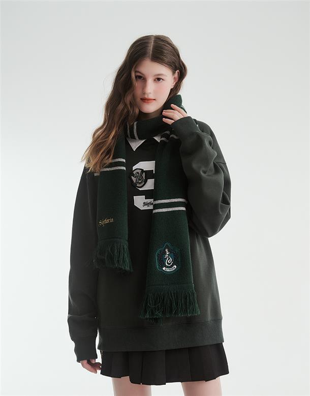 哈利波特系列,史萊哲林學院徽章質感貼布電繡,學院配條撞色,收尾鬚邊設計