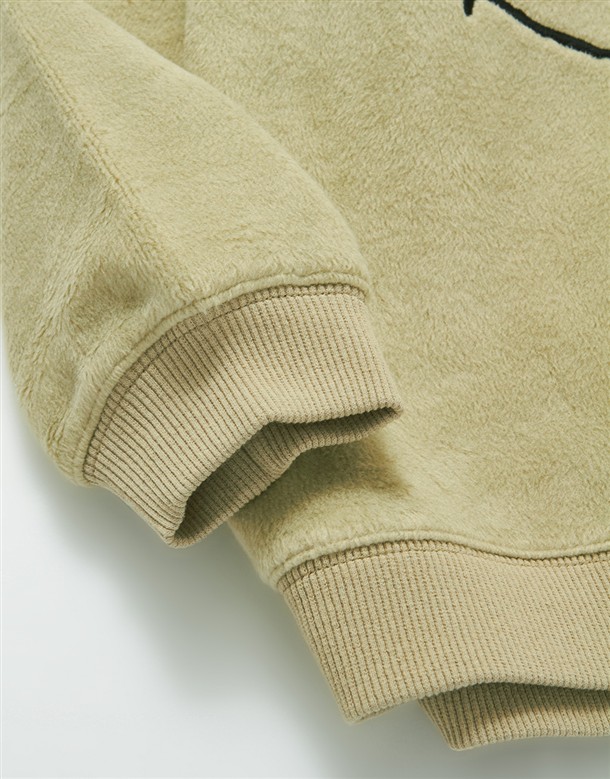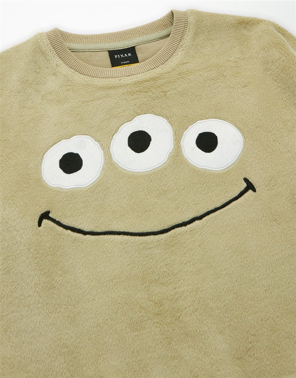 三眼怪大臉貼布繡大學TEE,舒適刷毛面料