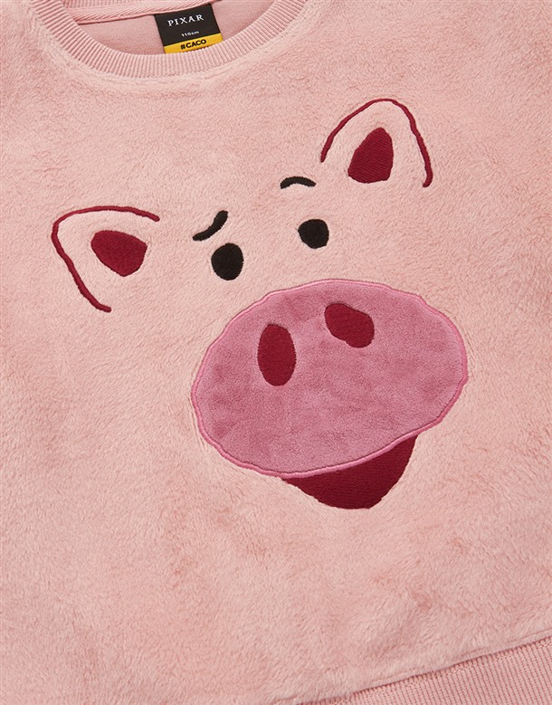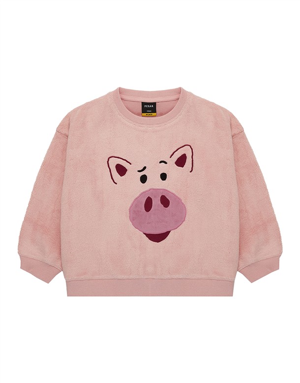火腿豬大臉貼布繡大學TEE,舒適刷毛面料