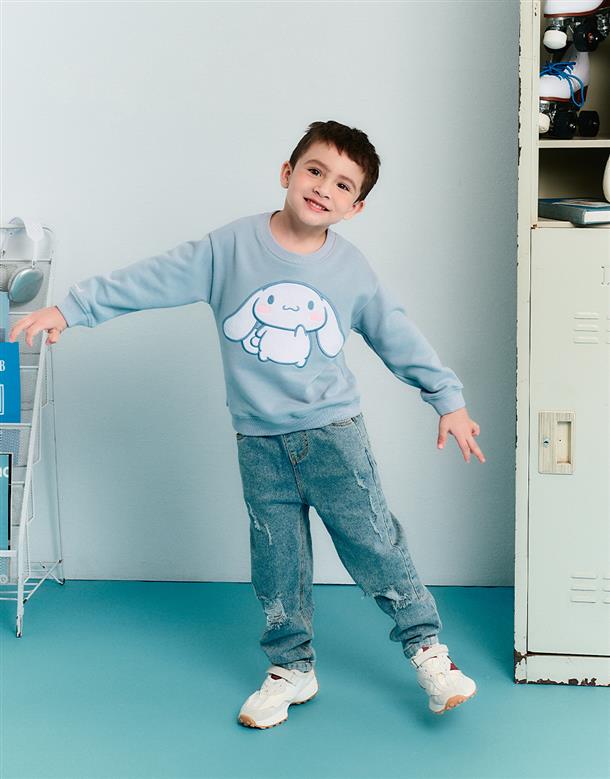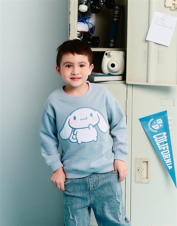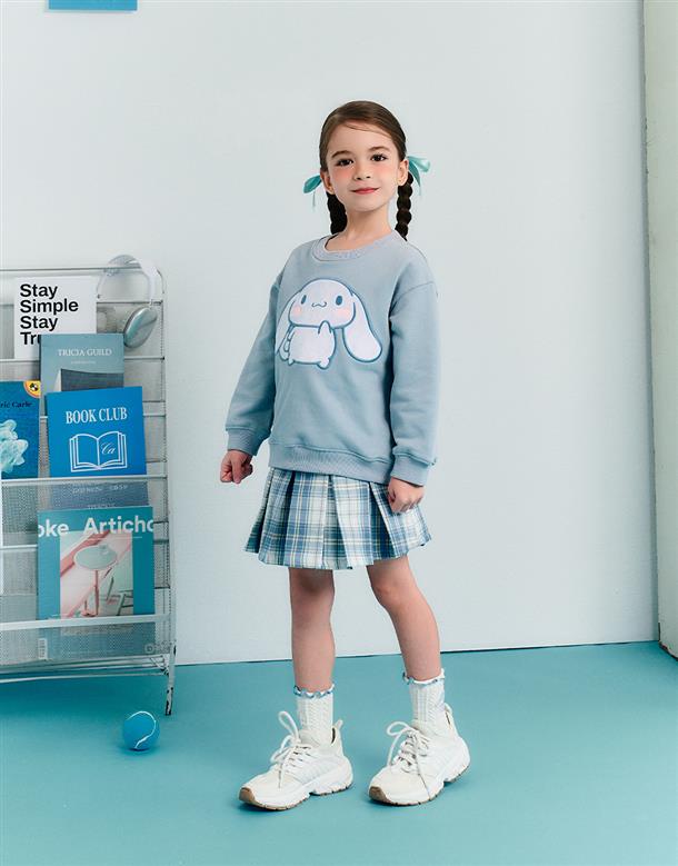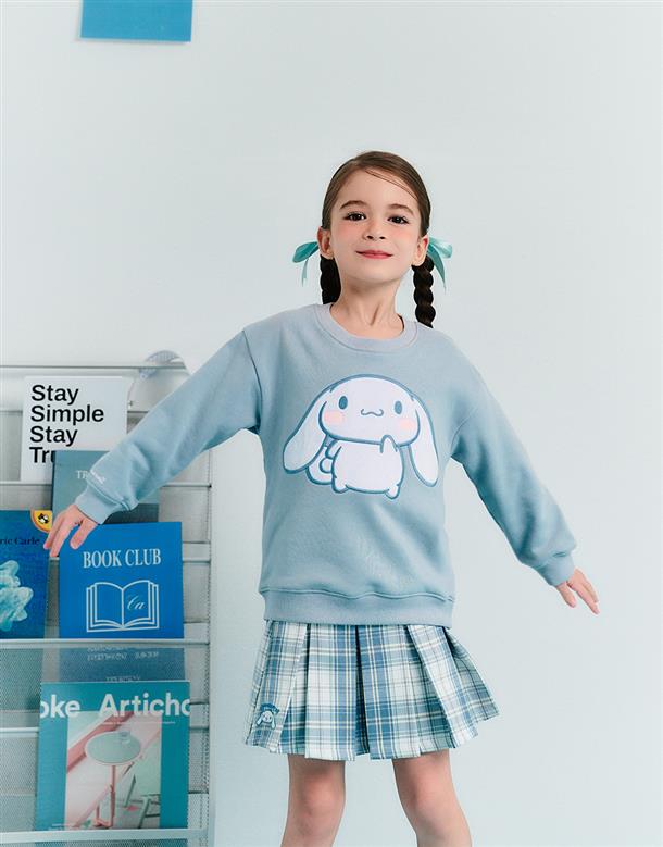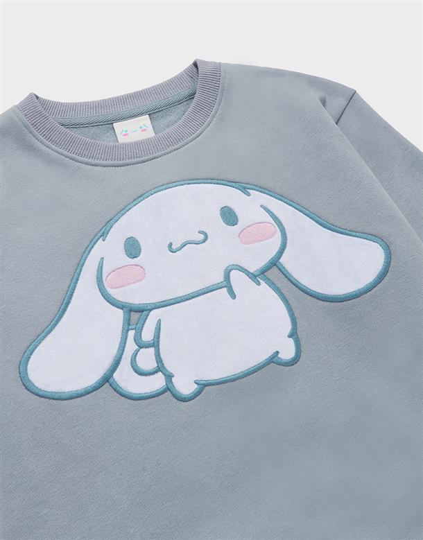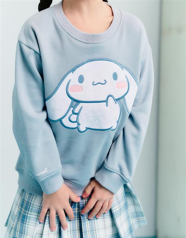 大耳狗精緻貼布繡設計,寬鬆落肩版型,舒適保暖刷毛面料