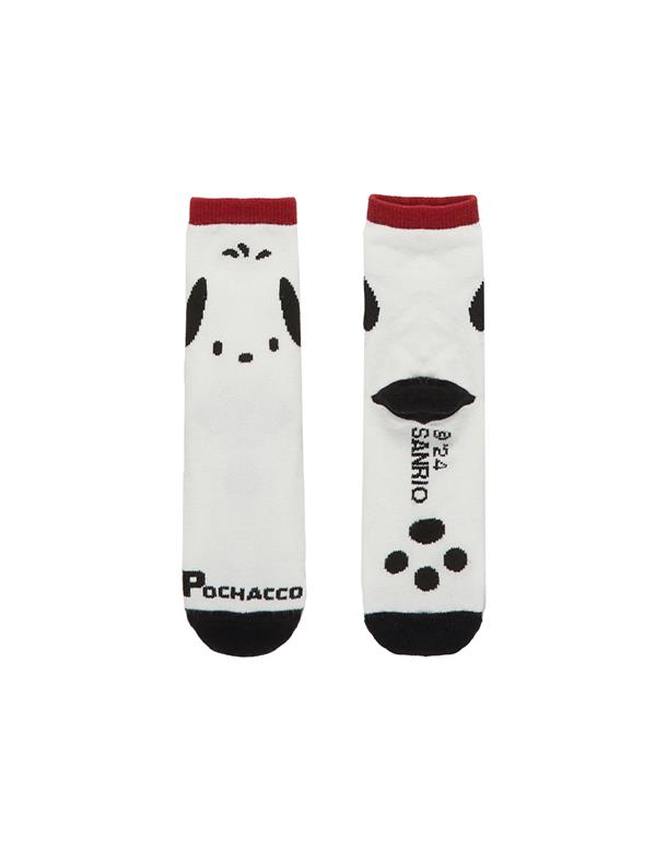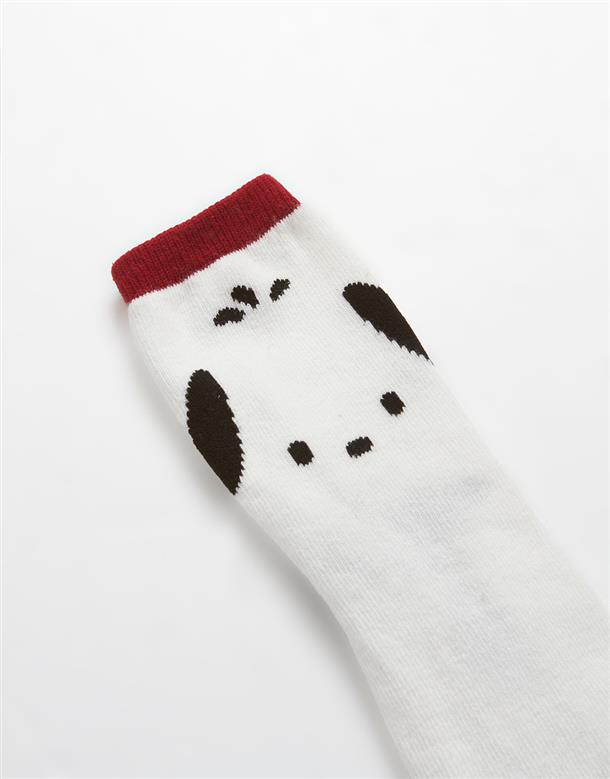 帕恰狗大臉圖案緹花,舒適撞色中長襪