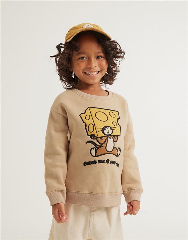 內刷毛舒適保暖上衣,傑利鼠細緻貼布繡設計