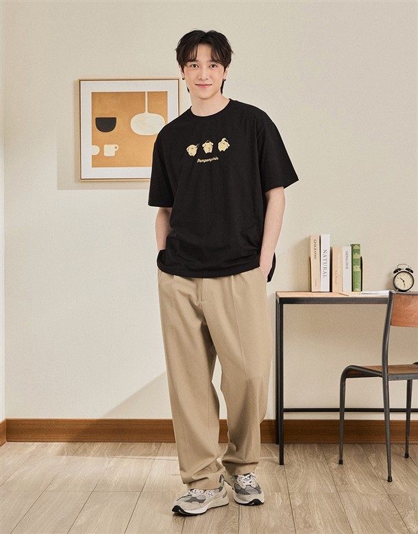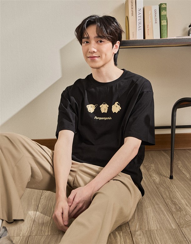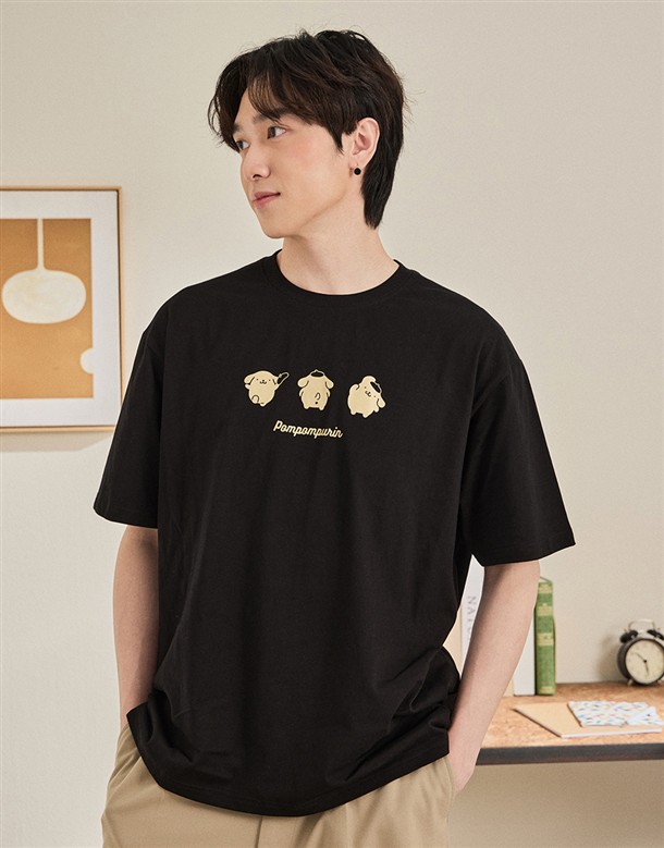 布丁狗質感燙金印花,舒適柔棉落肩短TEE