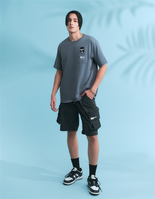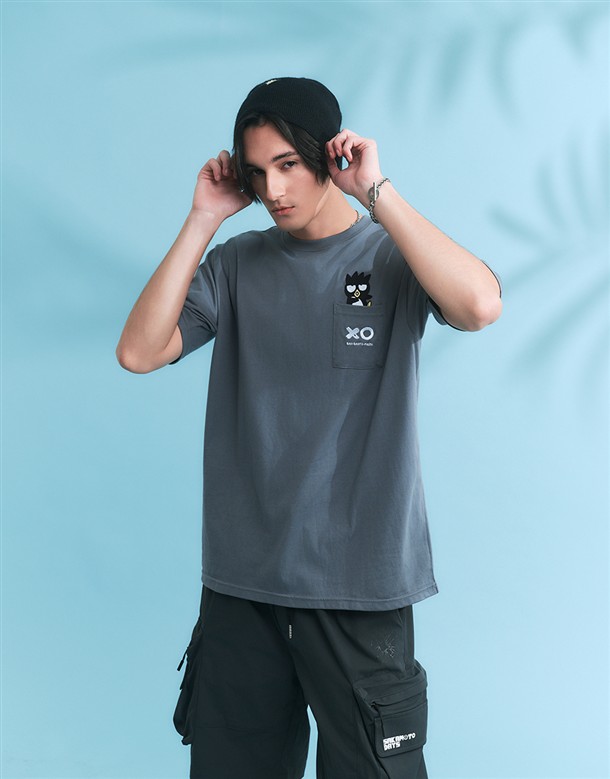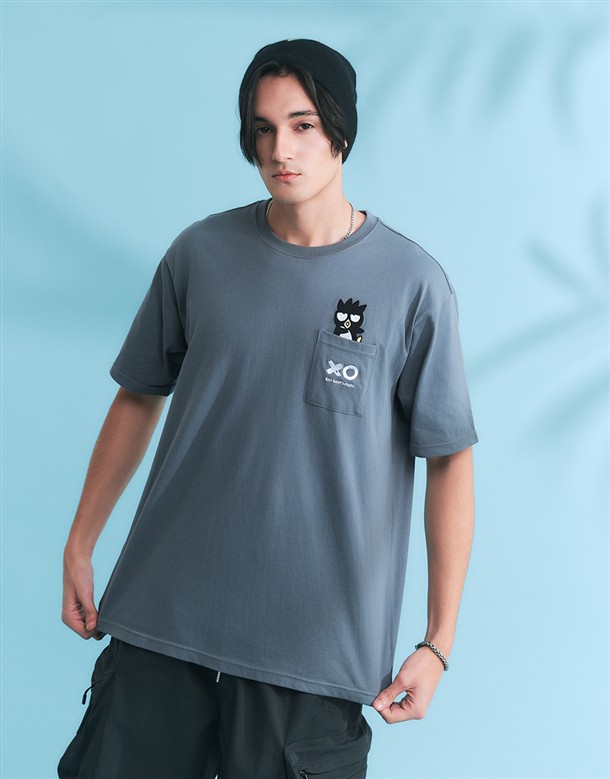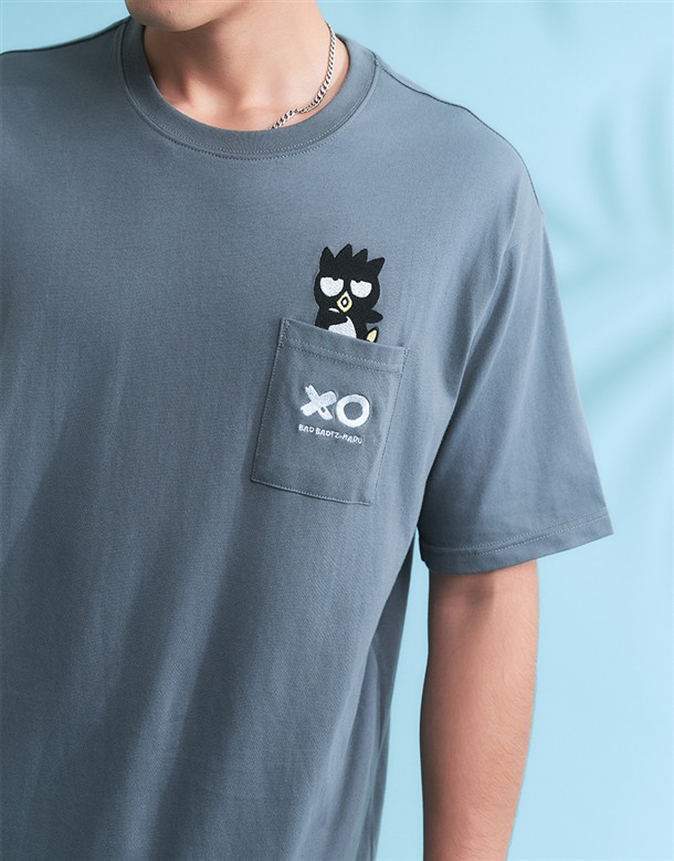 酷企鵝口袋電繡設計,舒適美國棉落肩短TEE