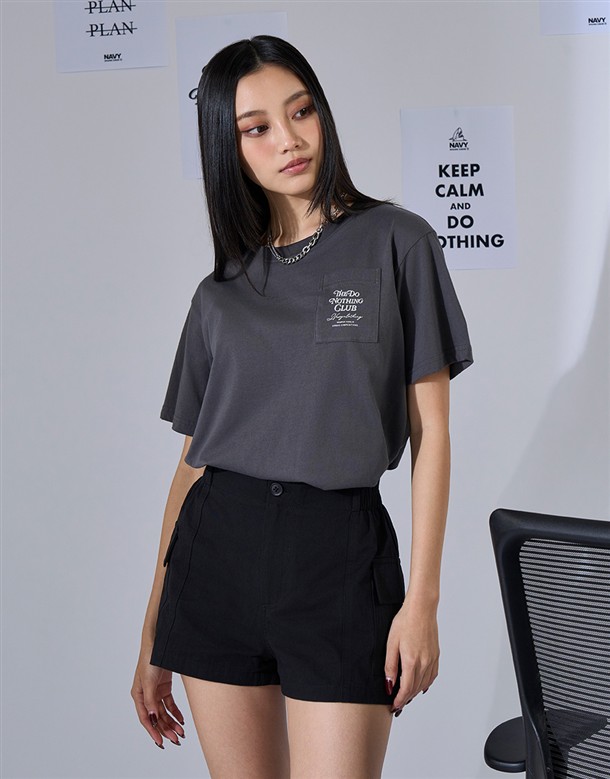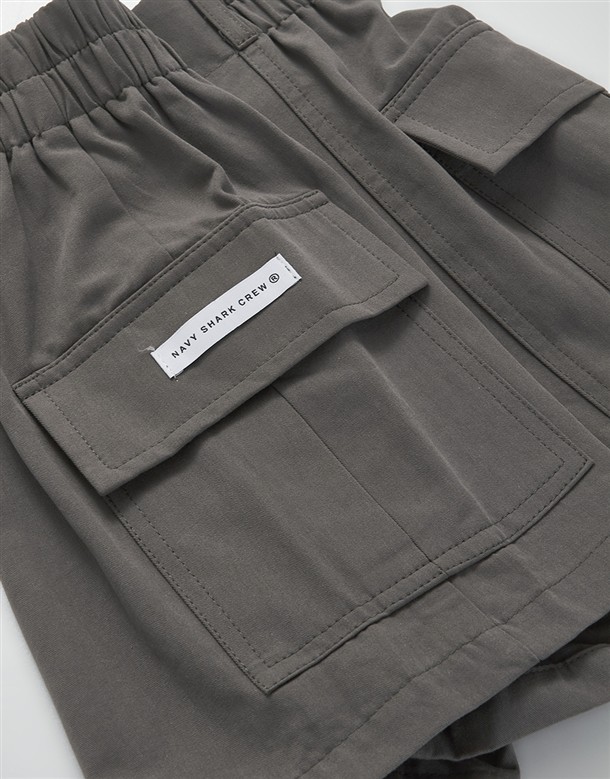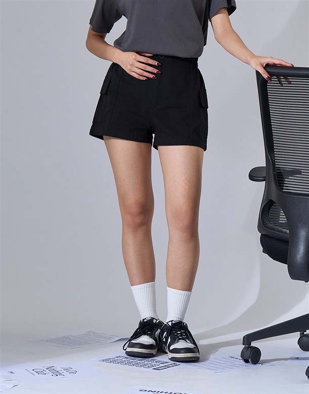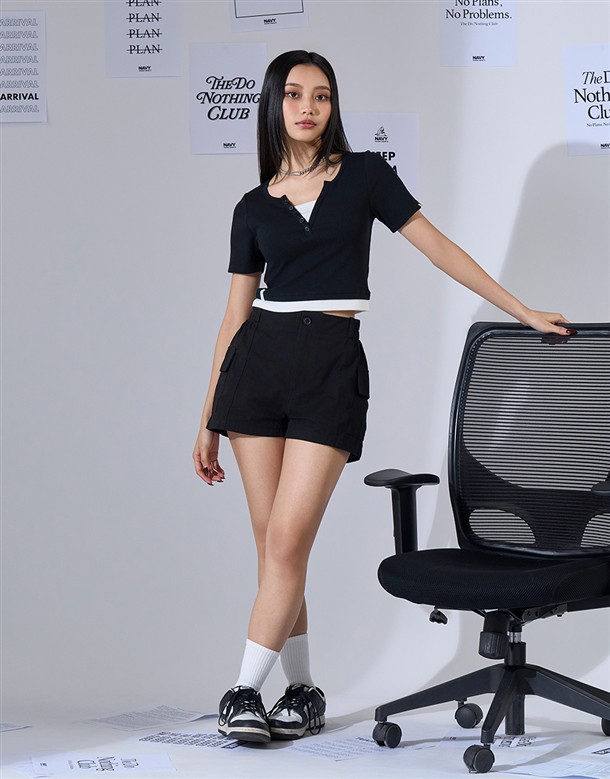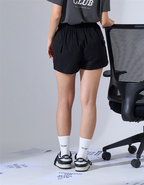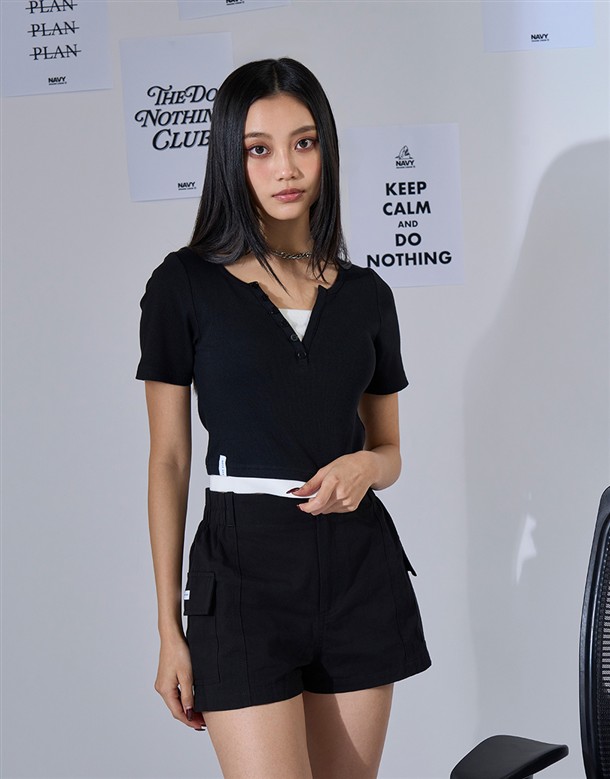 NAVY Girl休閒短褲,鬆緊設計好穿脫,舒適斜紋面料與高腰剪裁,日常百搭工裝短褲