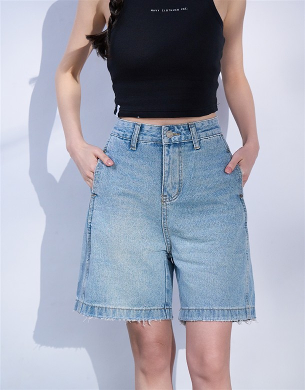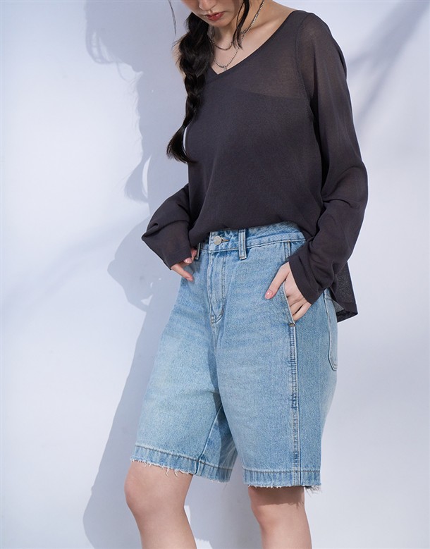 鬚邊牛仔設計,五分短褲剪裁,牛仔面料厚度適中四季可穿,率性穿搭下身