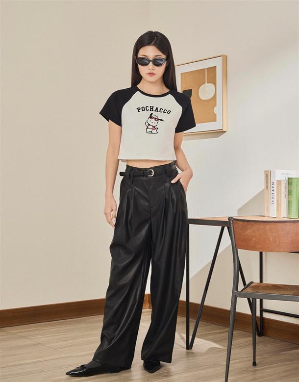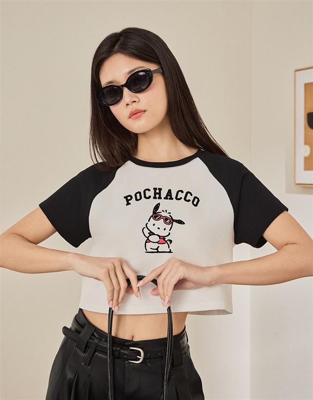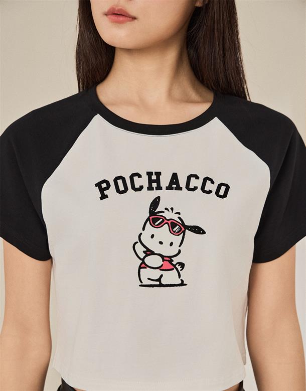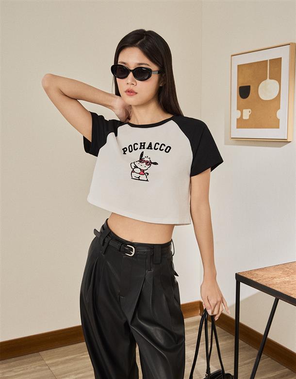 拉克蘭撞色合身上衣,帕恰狗印刷與植絨設計,舒適親膚彈性面料