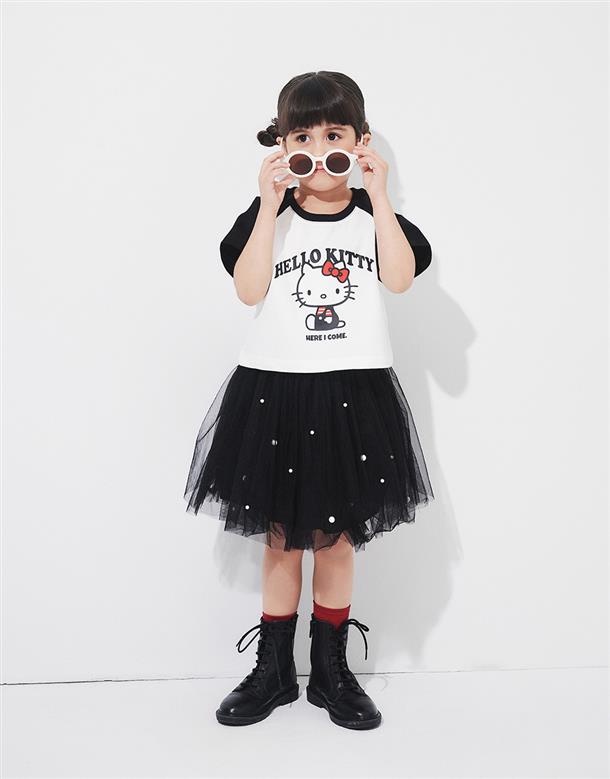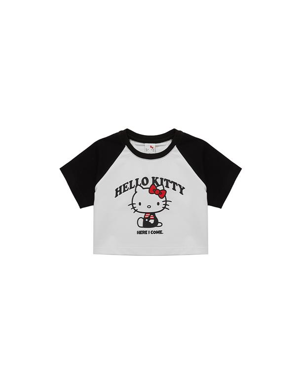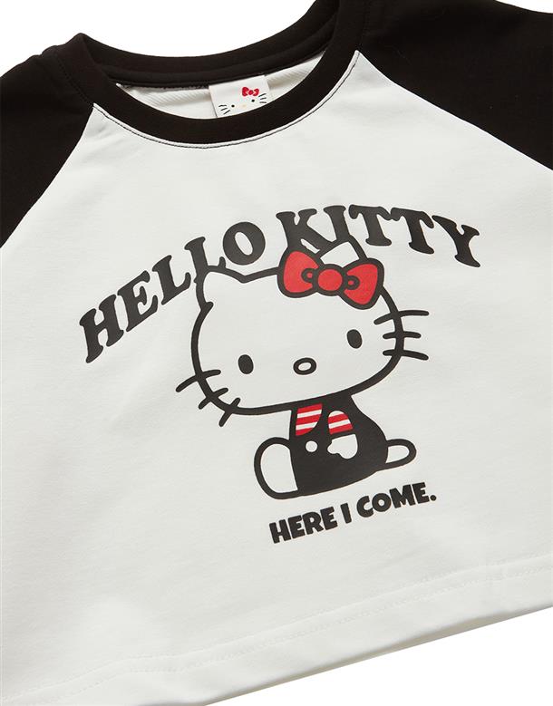 拉克蘭袖短版上衣,凱蒂貓排圖印刷設計,親膚彈性魚鱗面料