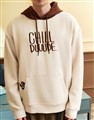 快俠精緻電繡,連帽撞色質感麂皮絨落肩帽TEE