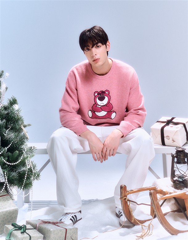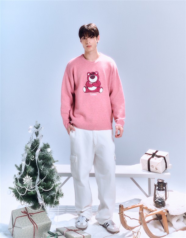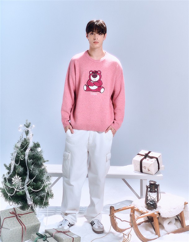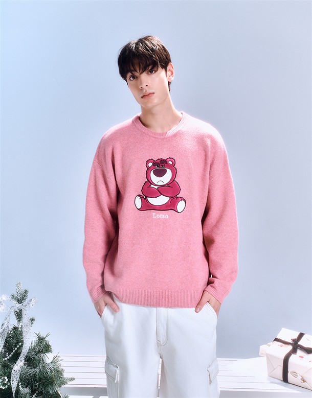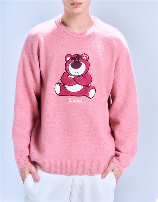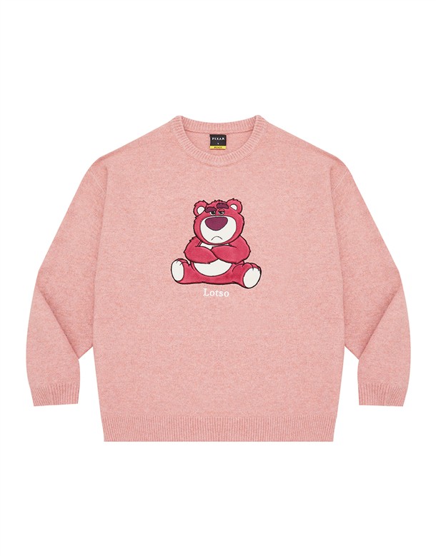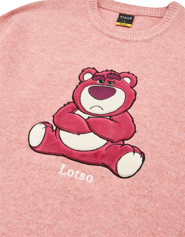 皮克斯系列,熊抱哥質感絨毛貼布繡,落肩寬鬆保暖毛衣