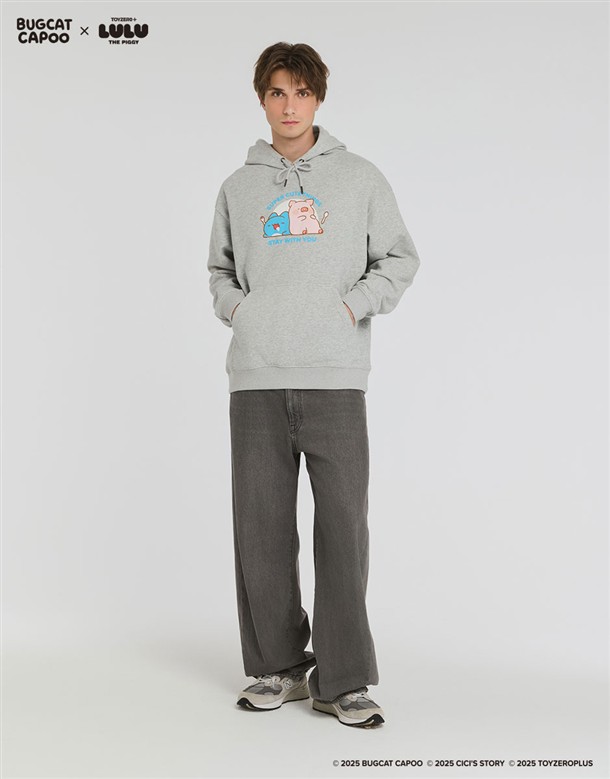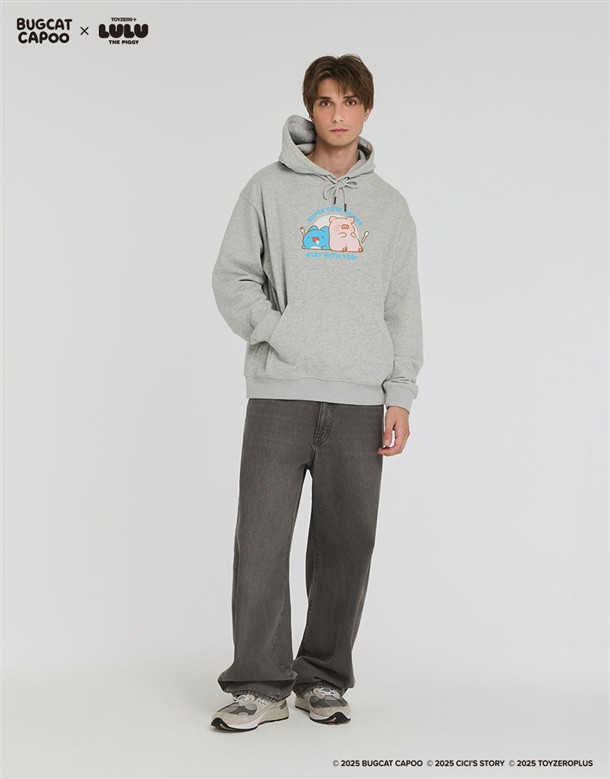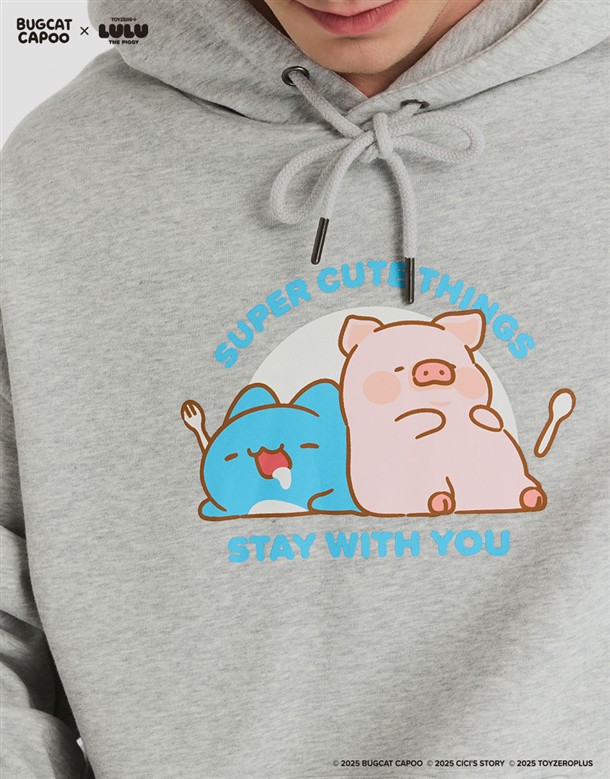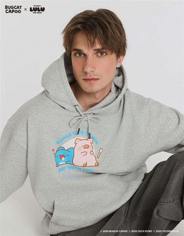 咖波聯名LULU豬趣味設計,舒適薄刷毛寬鬆中性款帽TEE