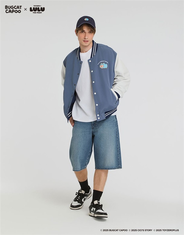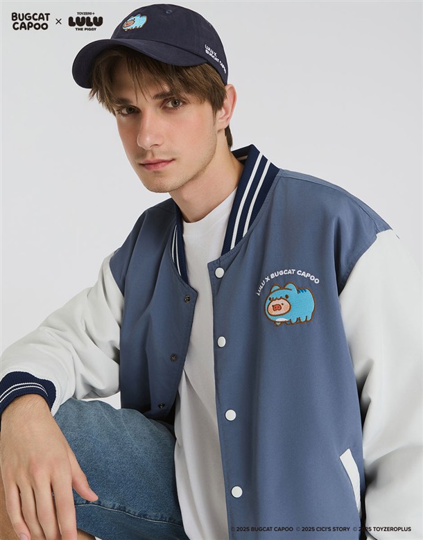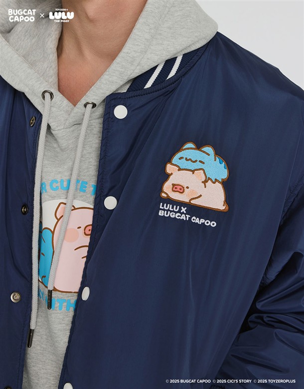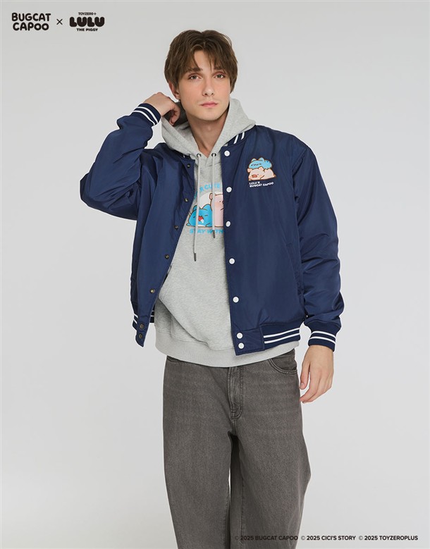 咖波聯名LULU豬雙面穿設計寬鬆棒球外套