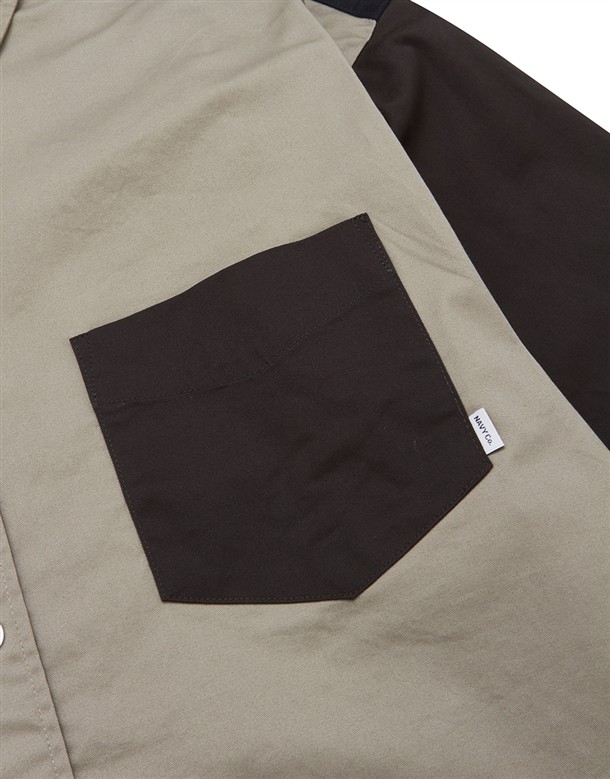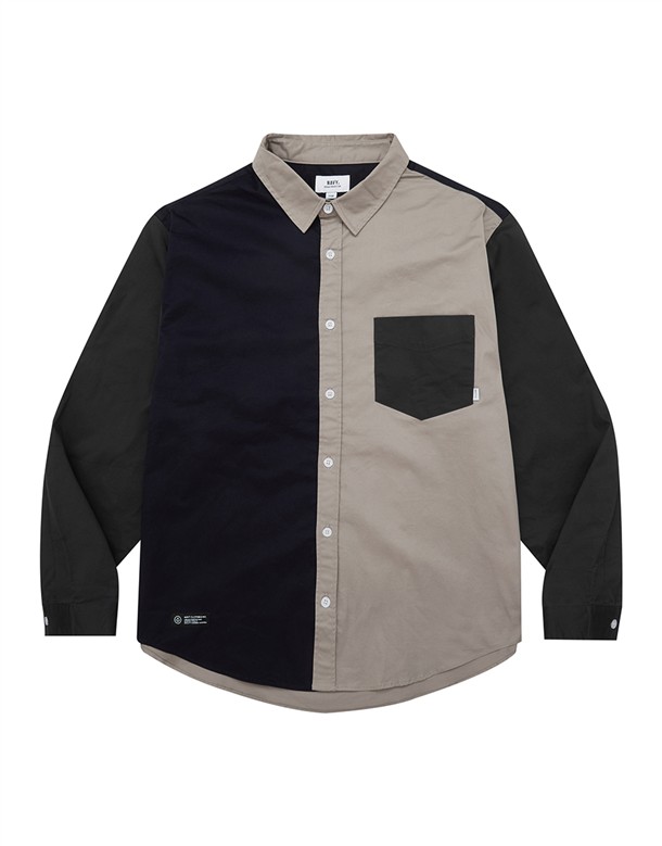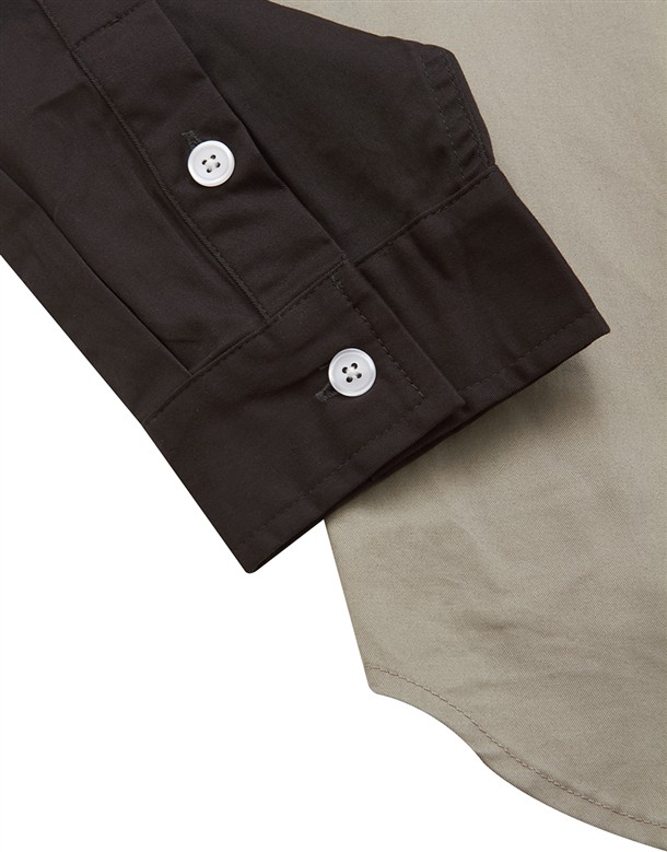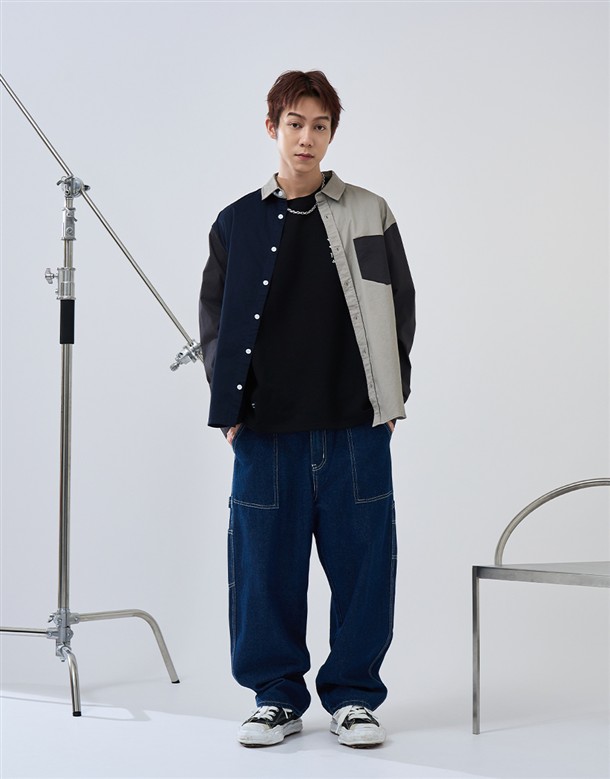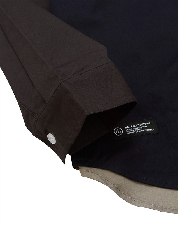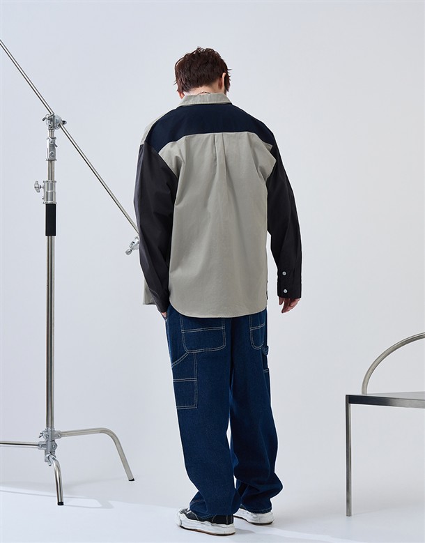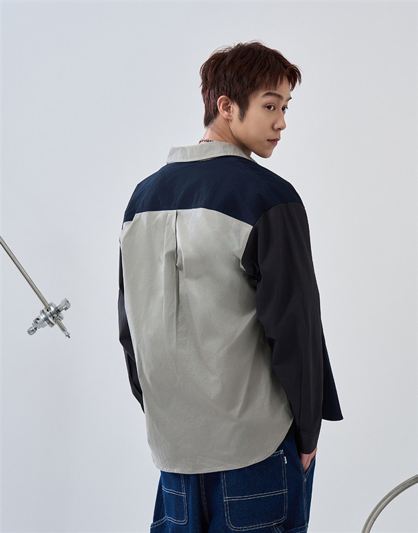 彈性面料拼色款,經典日系穿搭造型必備長袖襯衫