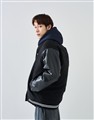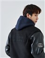 街頭造型穿搭必備,皮革袖保暖鋪棉棒球外套