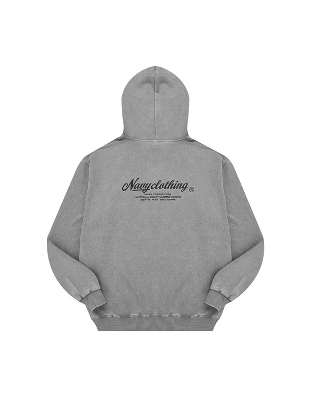 穿搭造型必備,洗水面料印刷透底效果書寫文字連帽TEE