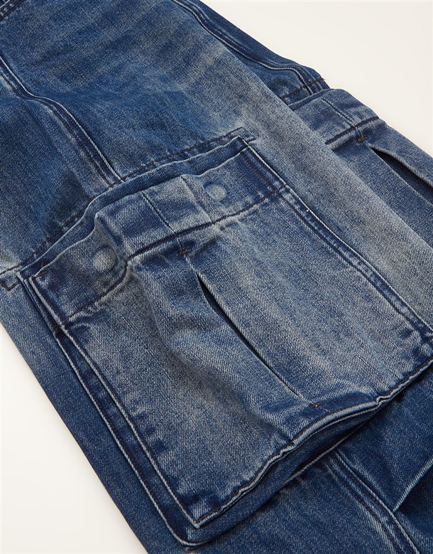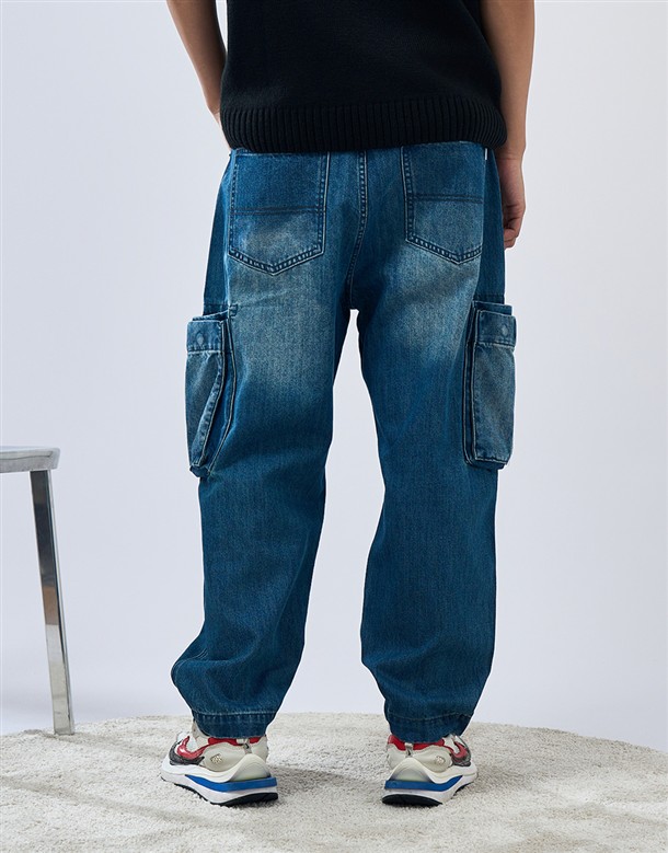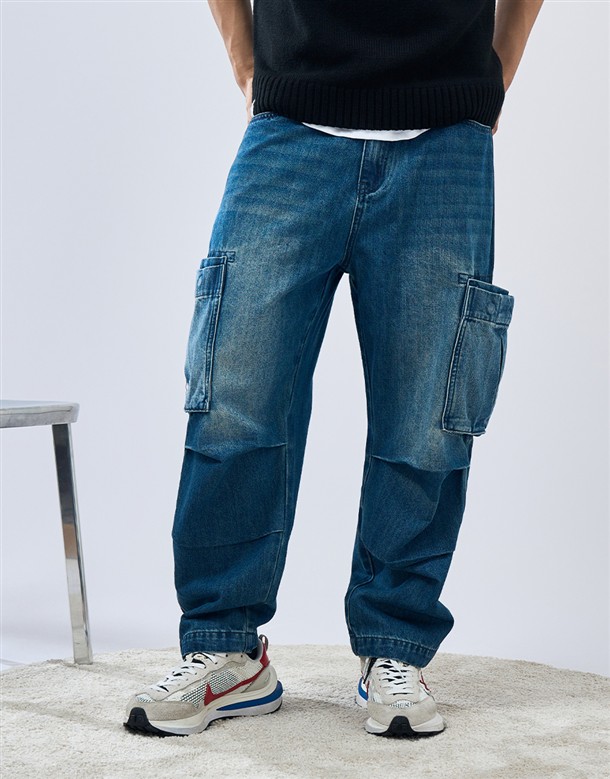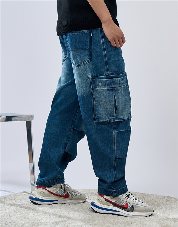 NAVY 下身穿搭 " 牛仔褲系列 ",洗水寬鬆工裝口袋牛仔縮口褲