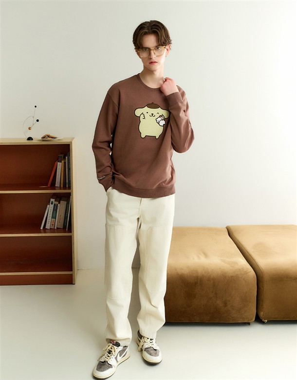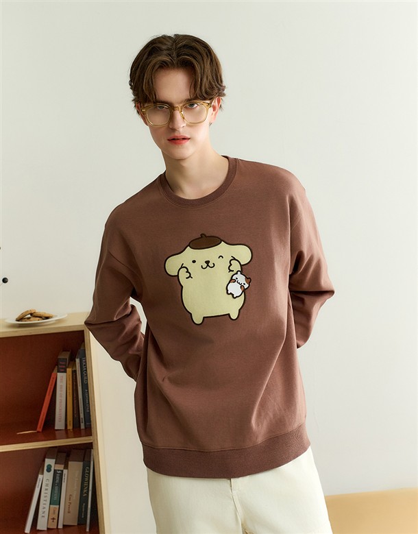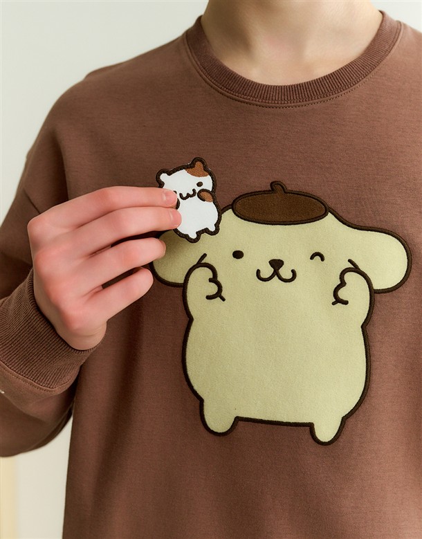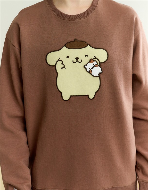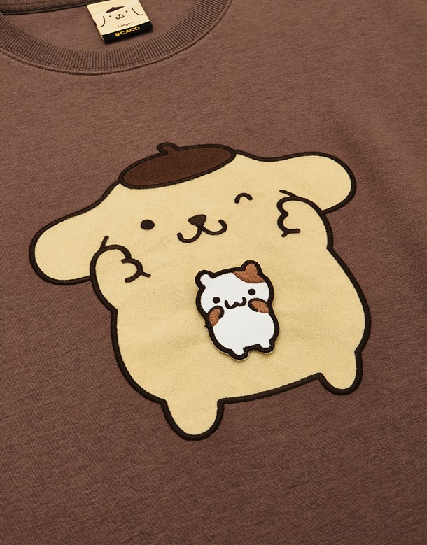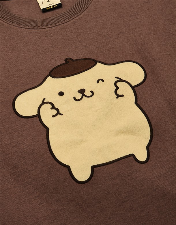 布丁狗貼布繡趣味魔鬼氈工藝,舒適小絨布落肩大學TEE
