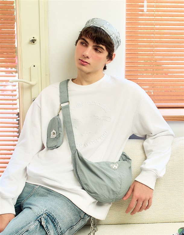 小白紫外線變色膠章,防潑水尼龍斜跨包附零錢包