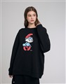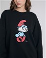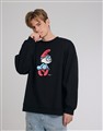 藍色小精靈老爹趣味植絨設計,寬鬆落肩厚棉大學TEE