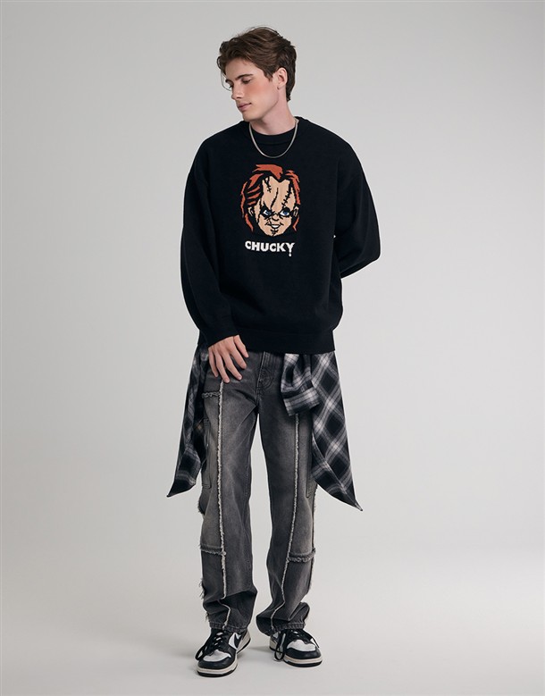 恰吉質感緹花,舒適保暖落肩寬鬆毛衣
