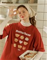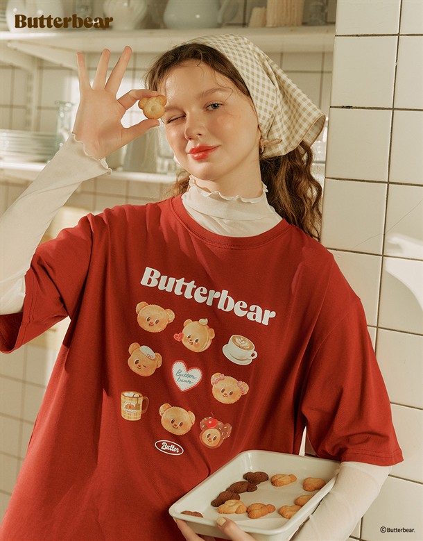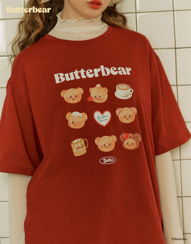 Butterbear系列,質感九宮格圖案印刷設計,舒適親膚落肩寬鬆上衣,男女適穿版型