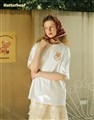 Butterbear系列,質感圖案印刷,附領巾搭配設計,舒適親膚落肩寬鬆上衣,男女適穿版型