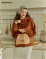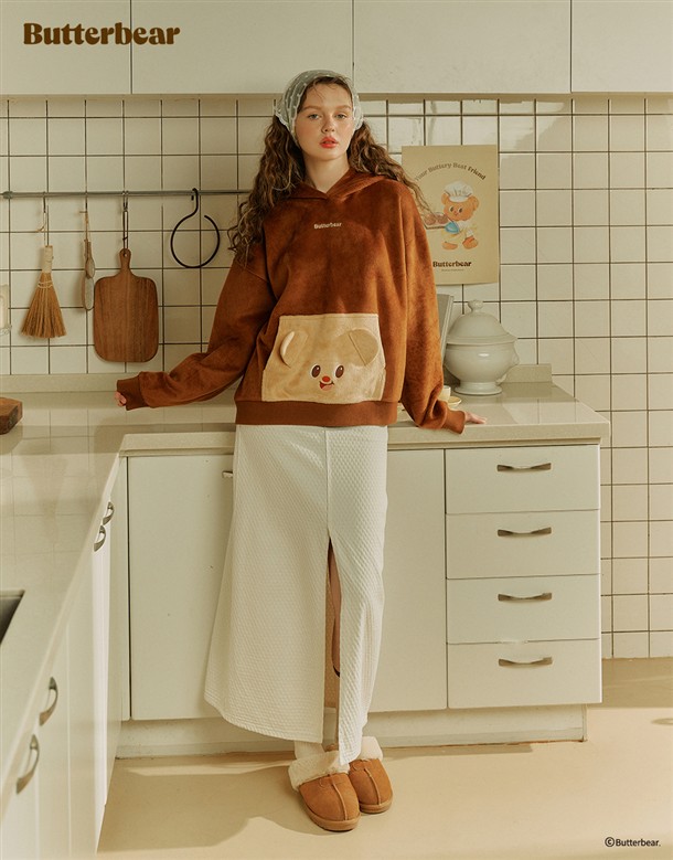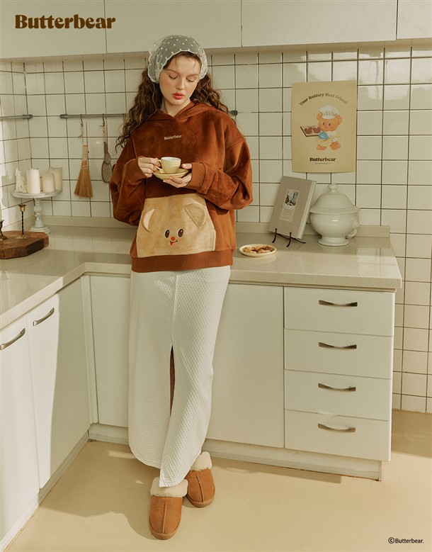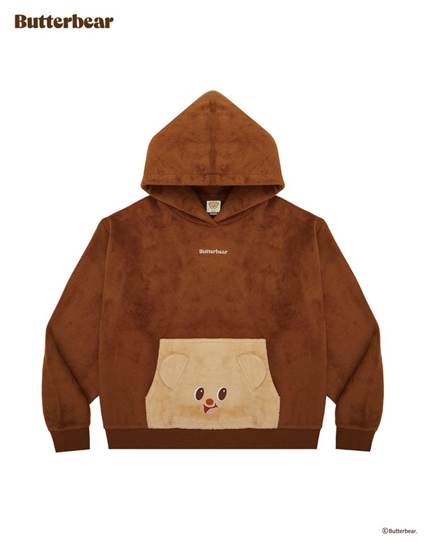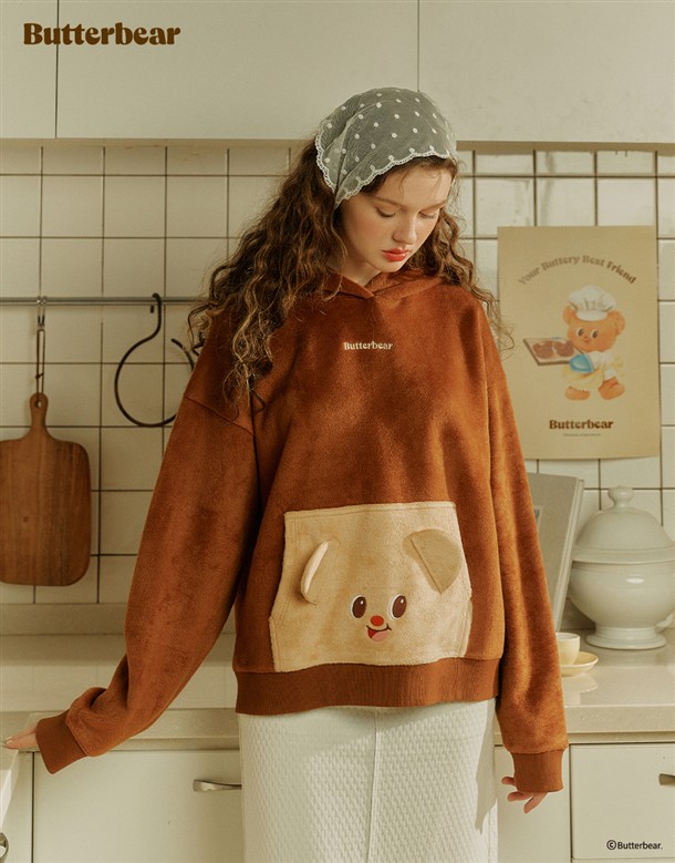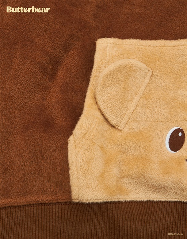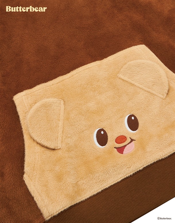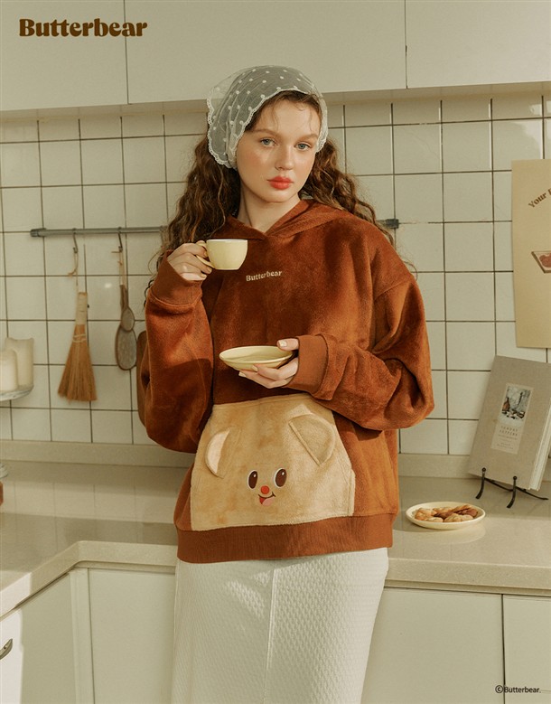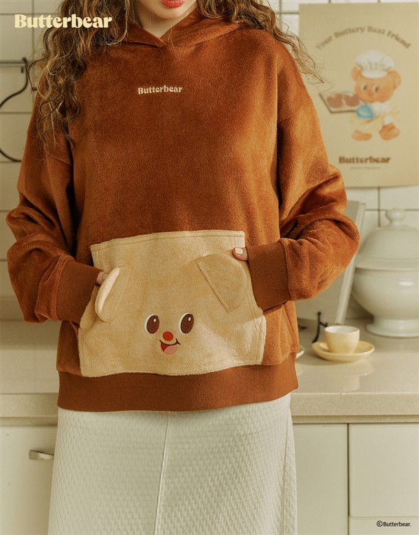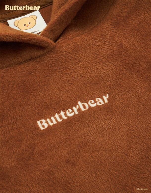 Butterbear系列,精緻電繡,鼠袋立體耳朵設計,舒適保暖絨面落肩寬鬆帽TEE